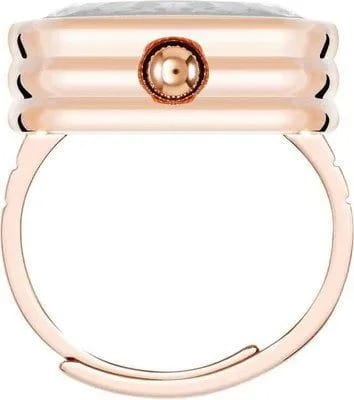 Женские часы-кольцо Anne Klein Ring 5124RINGPM представляют собой уникальный аксессуар, сочетающий функциональность часов и элегантность ювелирного украшения. Корпус круглой формы диаметром 20.5–21 мм изготовлен из нержавеющей стали с PVDPVDУльтратонкое покрытие наносится в технике вакуумного напыления, сочетает в себе нитрид титана особой прочности со слоем золота или оксида хрома. Несёт в себе декоративную или защитную функцию.-покрытием в розовом цвете. Модель оснащена кварцевым механизмом японского производства с точностью хода ±20 секунд в месяц и аналоговой индикацией на роззовом циферблате, украшенном кристаллами. Защитное минеральное стеклоМинеральное стеклоМинеральное стекло представляет собой искусственно выращенный минерал кварца. Такое стекло отличается особой устойчивостью к повреждениям и царапинам. Уступает по некоторым качествам сапфировому стеклу. устойчиво к царапинам, а водонепроницаемость 30–100 метров (3–10 ATM) обеспечивает защиту от брызг. Регулируемый дизайн кольца позволяет подогнать размер под палец. Часы толщиной 8 мм сочетают в себе минималистичный стиль с функциональностью, идеально подходя для повседневного ношения и особых случаев.