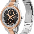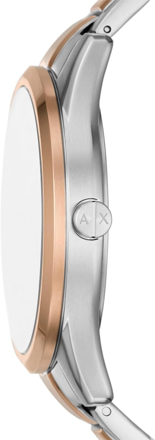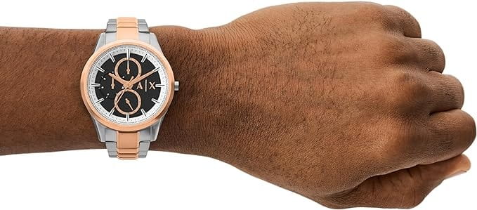 Armani Exchange Dante AX1882 — это стильные часы, которые станут отличным дополнением к вашему образу. Они оснащены надежным кварцевым механизмом и имеют корпус из высококачественной нержавеющей стали, а безельБезельВнешний ободок, закрепляющий стекло. В спортивных часах так называется поворотное кольцо с делениями на циферблате, выполняет роль таймера – замеряет отрезки времени на шкале. Неподвижный безель – элемент декора. Однонаправленно вращающийся безель на дайверских часах позволяет фиксировать моменты погружения и выныривания на поверхность. розовымIP-покрытиемIP-покрытиеМетод ионного напыления. Демонстрирует повышенную устойчивость к истиранию, окислению и химическим веществам. Под воздействием высокого давления и температуры около 1500°C молекулы металла надёжно соединяются с частицами корпуса часов.. Черный циферблат украшен метками в виде штрихов, придавая часам современный и утонченный вид. Минеральное стеклоМинеральное стеклоМинеральное стекло представляет собой искусственно выращенный минерал кварца. Такое стекло отличается особой устойчивостью к повреждениям и царапинам. Уступает по некоторым качествам сапфировому стеклу. обеспечивает надежную защиту от царапин.  функциональность. Функциональность часов на высоте: они показывают время в 12-ти и 24-х часовом формате и оснащены удобными индикаторами даты и дня недели на отдельных циферблатах. Браслет, выполненный из стали с частичным розовым IP-покрытиемIP-покрытиеМетод ионного напыления. Демонстрирует повышенную устойчивость к истиранию, окислению и химическим веществам. Под воздействием высокого давления и температуры около 1500°C молекулы металла надёжно соединяются с частицами корпуса часов., дополнен раскладной застёжкойРаскладная застёжкаТакой тип застёжки используется только на браслетах из металла. Она никогда не раскрывается полностью, происходит разделение на 2 и более частей. Раскладывающая застёжка снизит вероятность потери часов к минимуму. для комфортного ношения. Часы обладают водозащитой 50WR, что делает их подходящими для повседневного использования.