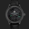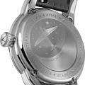 Циферблат в стиле Art Deco украшает усложнение фаз Луны в верхней половине, обрамлённой тонким кольцом облаков. Отмечено окно даты в положении «6 часов». Стрелки и накладные метки обработаны люминесцентным покрытиемЛюминесцентное покрытиеПозволяет считывать показания времени в темноте. Производители наносят на стрелки, часовые индексы, безель или поверхность циферблата светонакопительный состав, дающий холодное свечение. Superluminova — для уверенного считывания в темноте. Поверхность защищена сапфировым стекломСапфировое стеклоПрочный и надёжный материал из кристалла сапфира синтетического происхождения, характеризующийся особой твёрдостью и устойчивостью к царапинам и повреждениям. с антибликовым покрытием.