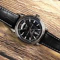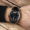 Модель дополнена кожаным ремешком, оснащённым надёжной раскладной застёжкойРаскладная застёжкаТакой тип застёжки используется только на браслетах из металла. Она никогда не раскрывается полностью, происходит разделение на 2 и более частей. Раскладывающая застёжка снизит вероятность потери часов к минимуму., а сам корпус защищён от внешних воздействий благодаря водонепроницаемости до 100 метров и ударопрочному корпусуУдаропрочный корпусМеханизм заключён в корпус, выполненный из современных материалов, устойчивых к ударам, механическим повреждениям и падению с высоты: инновационный пластик, карбон, нержавеющая сталь, титан..