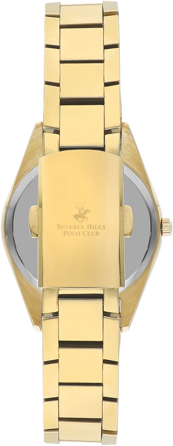 Американские женские часы Beverly Hills Polo Club BP3300X.130 с минеральным стекломМинеральное стеклоМинеральное стекло представляет собой искусственно выращенный минерал кварца. Такое стекло отличается особой устойчивостью к повреждениям и царапинам. Уступает по некоторым качествам сапфировому стеклу., кварцевый механизм с высокой точностью. Класс водозащиты: 50 метров, позволит защитить корпус от случайных брызг или капель дождя. Браслет часов изготовлены из стали с IP-покрытиемIP-покрытиеМетод ионного напыления. Демонстрирует повышенную устойчивость к истиранию, окислению и химическим веществам. Под воздействием высокого давления и температуры около 1500°C молекулы металла надёжно соединяются с частицами корпуса часов.. Браслет с раскладной застёжкойРаскладная застёжкаТакой тип застёжки используется только на браслетах из металла. Она никогда не раскрывается полностью, происходит разделение на 2 и более частей. Раскладывающая застёжка снизит вероятность потери часов к минимуму.
