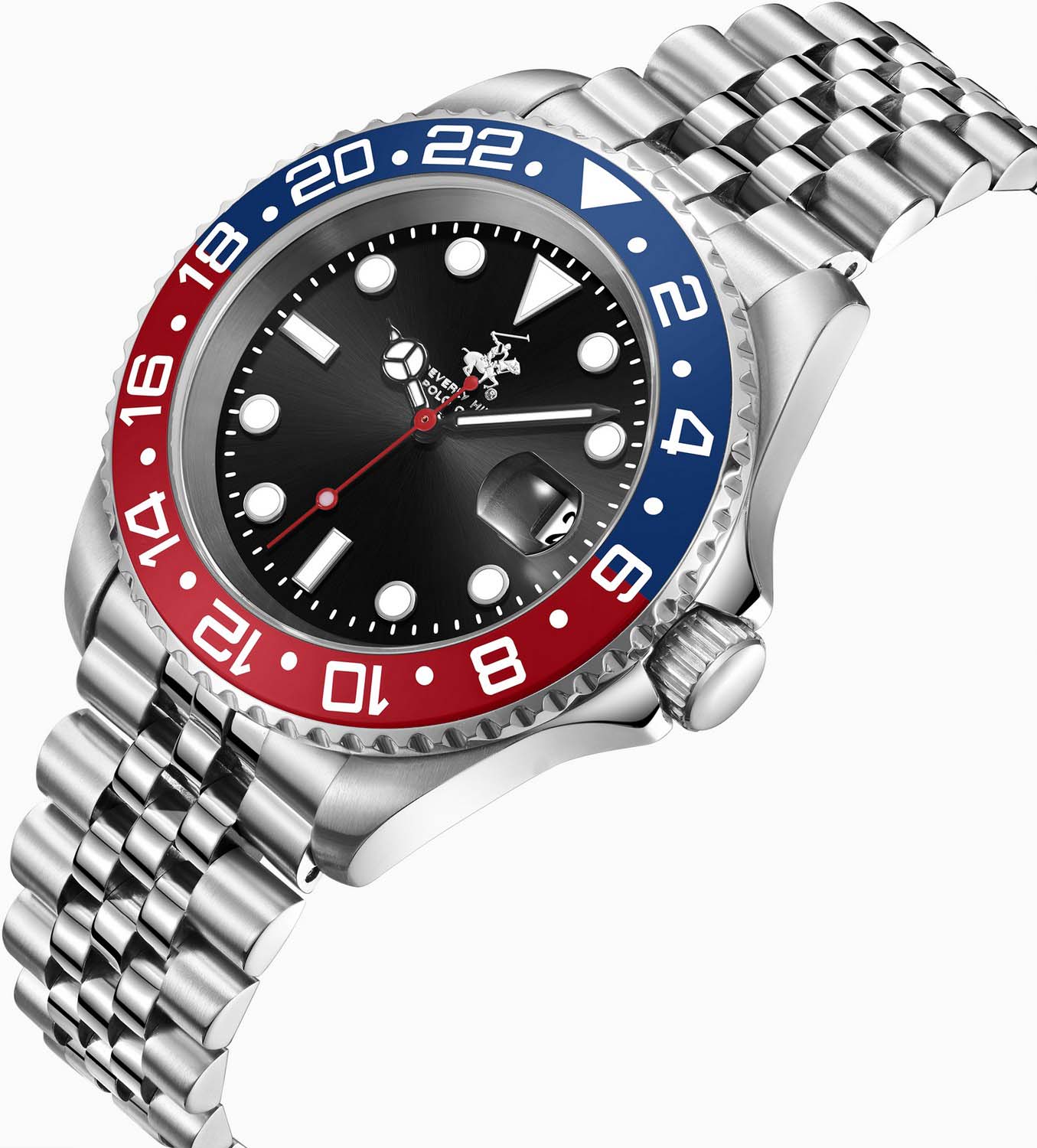 Мужские наручные часы Beverly Hills Polo Club BP3641X.358 с надёжным кварцевым механизмом. Минеральное стеклоМинеральное стеклоМинеральное стекло представляет собой искусственно выращенный минерал кварца. Такое стекло отличается особой устойчивостью к повреждениям и царапинам. Уступает по некоторым качествам сапфировому стеклу. устойчивое к мелким механическим повреждениям. Корпус часов изготовлен из стали. Стальной браслет на раскладной застёжкеРаскладная застёжкаТакой тип застёжки используется только на браслетах из металла. Она никогда не раскрывается полностью, происходит разделение на 2 и более частей. Раскладывающая застёжка снизит вероятность потери часов к минимуму.. Вращающийся стальной безельБезельВнешний ободок, закрепляющий стекло. В спортивных часах так называется поворотное кольцо с делениями на циферблате, выполняет роль таймера – замеряет отрезки времени на шкале. Неподвижный безель – элемент декора. Однонаправленно вращающийся безель на дайверских часах позволяет фиксировать моменты погружения и выныривания на поверхность. с IP-покрытиемIP-покрытиеМетод ионного напыления. Демонстрирует повышенную устойчивость к истиранию, окислению и химическим веществам. Под воздействием высокого давления и температуры около 1500°C молекулы металла надёжно соединяются с частицами корпуса часов.. Стрелки и метки с люминесцентным покрытиемЛюминесцентное покрытиеПозволяет считывать показания времени в темноте. Производители наносят на стрелки, часовые индексы, безель или поверхность циферблата светонакопительный состав, дающий холодное свечение.. Класс водозащиты: 50 метров, позволит защитить корпус от случайных брызг или капель дождя.