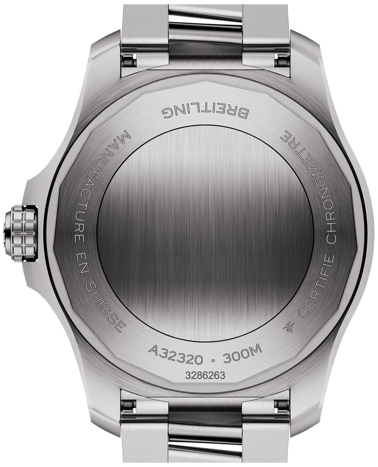 Часы оснащены автоматическим калибром Breitling 32, сертифицированным COSCСертификат COSCОфициальный сертификат, подтверждающий то, что часы ходят с особо высокой точностью. Для получения документа часы подвергаются тестовым испытаниям, разработанным швейцарским институтом тестирования хронометров COSC. Допустимая норма для механических часов -4/+6 секунд в день, для кварцевых моделей +/- 0,07 секунд в день.. Механизм имеет частоту 28 800 полуколебаний в час, 21 камень и запас хода около 42 часов. Водозащита до 30 ATM (300 метров) делает их подходящими для плавания и дайвинга.