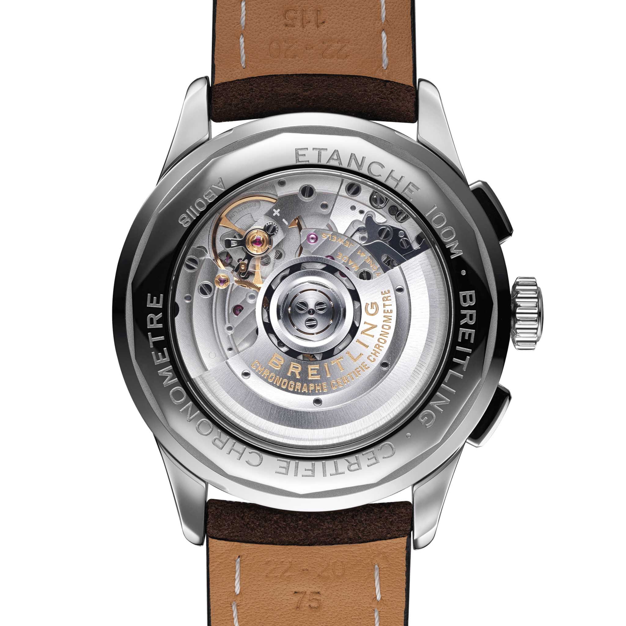 Часы Premier, разработанные Вилли Брайтлингом в 40-х годах прошлого века, стали первой моделью бренда, которая задумывалась в первую очередь как стильный аксессуар. Современная версия Premier, как и ее историческая предшественница, отличается элегантностью и изысканными деталями в стиле ретро, которые подчеркивают безупречный стиль своего владельца. Квадратные кнопки хронографа, циферблат «панда», характерный для хронографов с компоновкой bi-compax, бороздки по бокам корпуса и прозрачная задняя крышка из сапфирового стекла – все эти детали создают оригинальный внешний вид модели. Внутри корпуса спрятан фирменный мануфактурный калибр Breitling Manufacture Caliber 01, сертифицированный Швейцарским институтом официального тестирования хронометров (COSC).