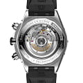 Корпус часов изготовлен из нержавеющей стали. Черный каучуковый ремешок со складной клипсой. Прозрачная задняя крышка корпуса из сапфирового стекла. Класс водозащиты: 200 метров.