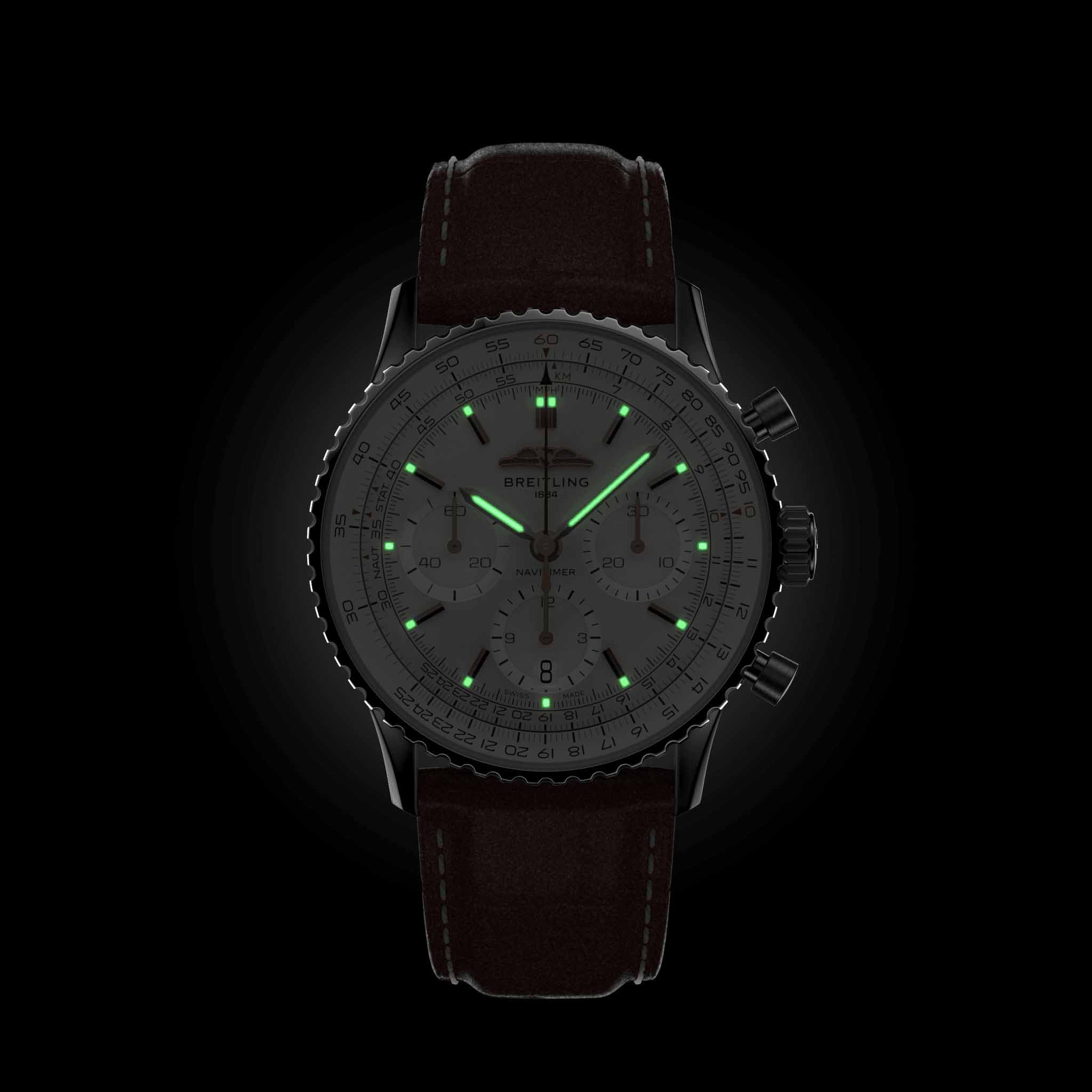 Мужские швейцарские часы-хронографХронографФункция позволяет измерять отрезки времени с особой точностью: часы, минуты, секунды. Верным признаком хронографа является наличие на циферблате 3 дополнительных окошек-счётчиков. с секундомеромСекундомерСекундоме́р — прибор, способный измерять интервалы времени с точностью до долей секунды. Breitling Navitimer B01 Chronograph 41 AB0139211G1P1, механический механизм (автоматический калибр) с высокой точностью. С момента своего дебюта 70 лет назад icon от Breitling претерпел множество модификаций, но этот новый Navitimer отражает его самые классические функции, дополняя их современными усовершенствованиями. Сплющенная логарифмическая линейка и выпуклый кристалл создают иллюзию более изящного профиля.  Сапфировое стеклоСапфировое стеклоПрочный и надёжный материал из кристалла сапфира синтетического происхождения, характеризующийся особой твёрдостью и устойчивостью к царапинам и повреждениям. устойчивое к появлению царапин, обладающее высокой прозрачностью. Класс водозащиты: 30 метров, позволит защитить корпус от случайных брызг или капель дождя. Корпус часов изготовлен из стали. Чередующиеся полированные и матовые металлические элементы создают блестящую, но в то же время сдержанную отделку. Кожаный ремешок с раскладной застёжкойРаскладная застёжкаТакой тип застёжки используется только на браслетах из металла. Она никогда не раскрывается полностью, происходит разделение на 2 и более частей. Раскладывающая застёжка снизит вероятность потери часов к минимуму.. Шкала тахиметраТахиметрРазмеченная шкала, располагается на ободке или безеле часов. Тахиметр позволяет рассчитать скорость на определённом участке пути, расстояние измеряется в километрах или милях. на циферблате. Часы имеют сертификат COSCСертификат COSCОфициальный сертификат, подтверждающий то, что часы ходят с особо высокой точностью. Для получения документа часы подвергаются тестовым испытаниям, разработанным швейцарским институтом тестирования хронометров COSC. Допустимая норма для механических часов -4/+6 секунд в день, для кварцевых моделей +/- 0,07 секунд в день.. Окошко даты находится в положении 6 часов. Стрелки и метки с люминесцентным покрытиемЛюминесцентное покрытиеПозволяет считывать показания времени в темноте. Производители наносят на стрелки, часовые индексы, безель или поверхность циферблата светонакопительный состав, дающий холодное свечение.. И если есть одно обновление, которое наверняка вызовет ностальгию, так это возвращение крыльев AOPA в исходное положение на 12 часов. Вот уже 70 лет оригинальные часы Breitling pilot в равной степени нравятся как авиаторам, так и ценителям вкуса. Это самые культовые часы Breitling, которые носят астронавты в космосе и крупнейшие звезды на земле, и одни из самых узнаваемых часов всех времен.