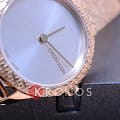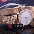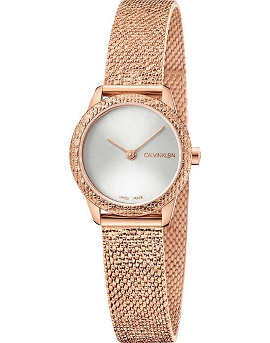 Гармонично сочетаются фактурный безельБезельВнешний ободок, закрепляющий стекло. В спортивных часах так называется поворотное кольцо с делениями на циферблате, выполняет роль таймера – замеряет отрезки времени на шкале. Неподвижный безель – элемент декора. Однонаправленно вращающийся безель на дайверских часах позволяет фиксировать моменты погружения и выныривания на поверхность. с браслетом плетения Mesh. Привлекательно выглядит игра оттенков серебристого циферблата «солнечные лучи» и PVD-покрытияPVDУльтратонкое покрытие наносится в технике вакуумного напыления, сочетает в себе нитрид титана особой прочности со слоем золота или оксида хрома. Несёт в себе декоративную или защитную функцию. цвета розового золота. Швейцарский кварцевый калибр от ETA. Минеральное стекло. Водонепроницаемость до 3 бар.