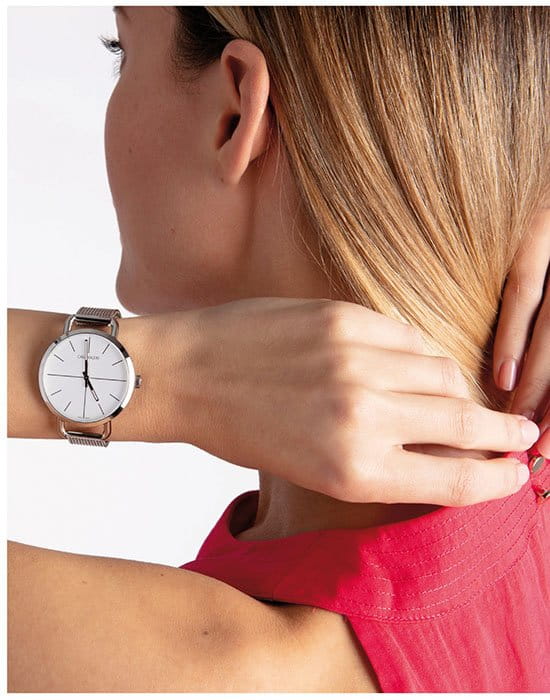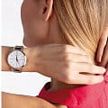 Белый циферблат отражает классический стиль. Стальной браслет миланского плетения стал привлекательной fashion-деталью. Швейцарский кварцевый механизм ETA F05.401. Водонепроницаемость при давлении 3 бар. Минеральное стекло. Стрелки с люминесцентной подсветкойЛюминесцентное покрытиеПозволяет считывать показания времени в темноте. Производители наносят на стрелки, часовые индексы, безель или поверхность циферблата светонакопительный состав, дающий холодное свечение..
