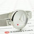 Привлекательно смотрится изящный стальной браслет, выполненный в технике миланского плетения. Серебристый циферблат всегда будет актуальным. Швейцарский кварцевый механизм ETA 901.001 гарантирует высокую точность хода. Прочное минеральное стекло препятствует появлению царапин.
