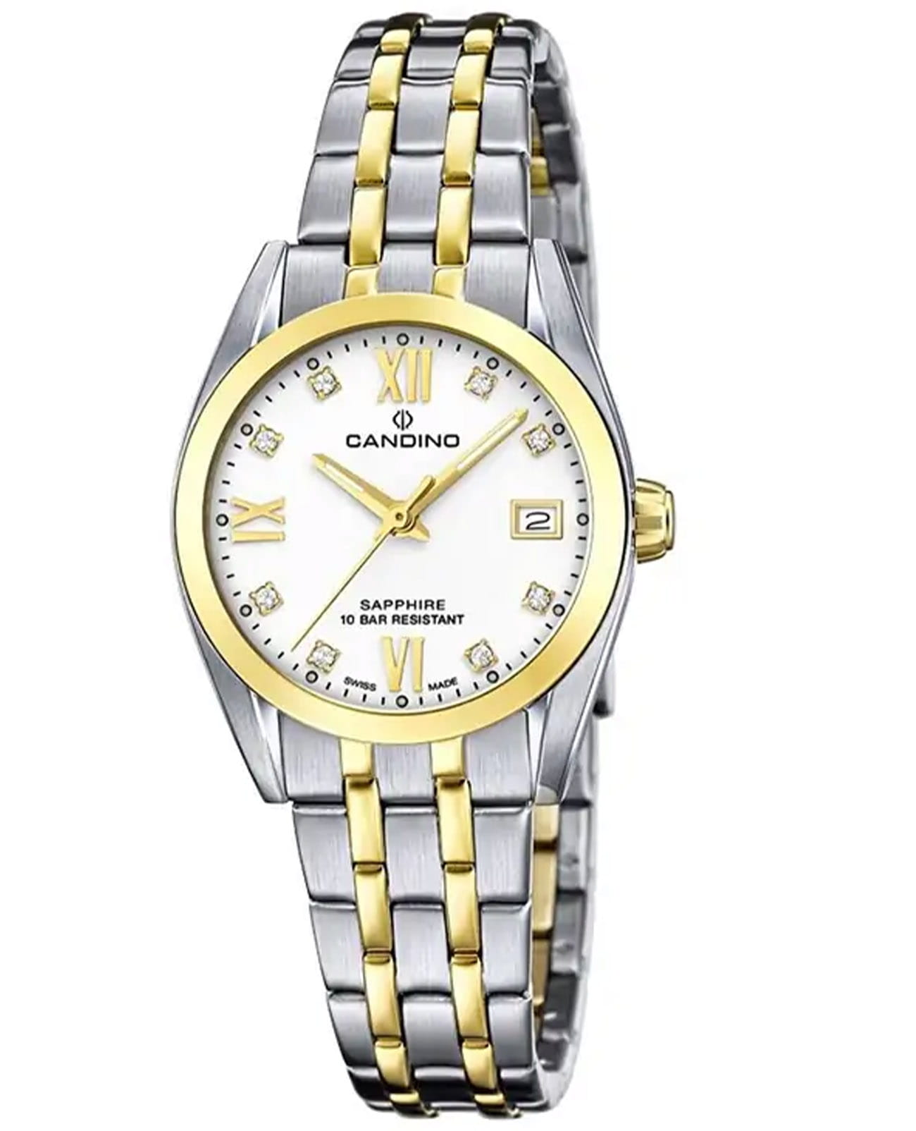 Женские швейцарские кварцевые часы с сапфировым стекломСапфировое стеклоПрочный и надёжный материал из кристалла сапфира синтетического происхождения, характеризующийся особой твёрдостью и устойчивостью к царапинам и повреждениям. Candino Couple Quartz C4704/A, кварцевый механизм с высокой точностью. Сапфировое стеклоСапфировое стеклоПрочный и надёжный материал из кристалла сапфира синтетического происхождения, характеризующийся особой твёрдостью и устойчивостью к царапинам и повреждениям. устойчивое к появлению царапин, обладающее высокой прозрачностью. Класс водозащиты: 100 метров, позволит плавать, нырять и заниматься другими водными видами спорта. Корпус часов изготовлен из стали с PVD-покрытиемPVDУльтратонкое покрытие наносится в технике вакуумного напыления, сочетает в себе нитрид титана особой прочности со слоем золота или оксида хрома. Несёт в себе декоративную или защитную функцию.. Браслет с раскладной застёжкойРаскладная застёжкаТакой тип застёжки используется только на браслетах из металла. Она никогда не раскрывается полностью, происходит разделение на 2 и более частей. Раскладывающая застёжка снизит вероятность потери часов к минимуму.. Стрелки с люминесцентным покрытиемЛюминесцентное покрытиеПозволяет считывать показания времени в темноте. Производители наносят на стрелки, часовые индексы, безель или поверхность циферблата светонакопительный состав, дающий холодное свечение.. Циферблат инкрустирован цирконами.