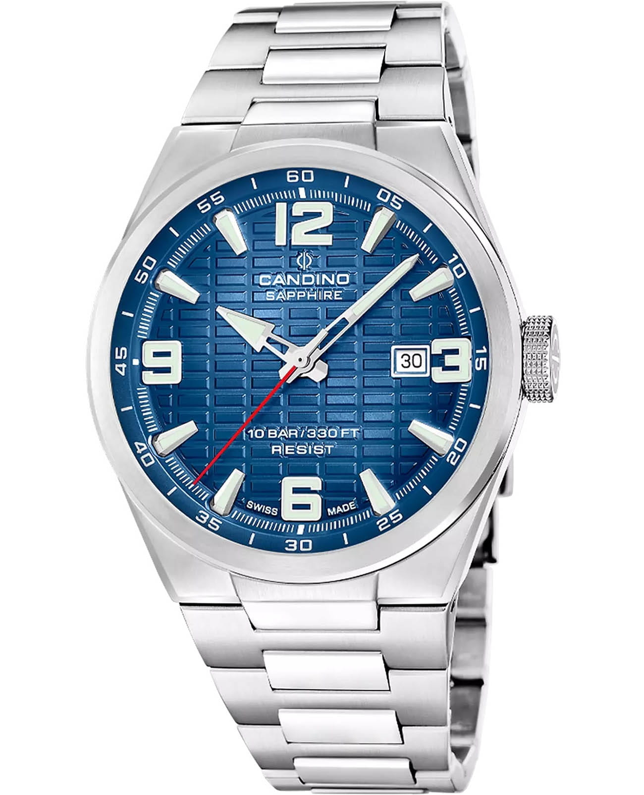 Мужские кварцевые часы Candino из коллекции Series 1947 — это сочетание классического дизайна, надёжности и швейцарского качества. Корпус диаметром 43 мм выполнен из нержавеющей стали. Циферблат синего цвета оформлен индексами и стрелками с люминесцентным покрытиемЛюминесцентное покрытиеПозволяет считывать показания времени в темноте. Производители наносят на стрелки, часовые индексы, безель или поверхность циферблата светонакопительный состав, дающий холодное свечение.. Окошко даты расположено в положении 3 часов. Циферблат защищён сапфировым стекломСапфировое стеклоПрочный и надёжный материал из кристалла сапфира синтетического происхождения, характеризующийся особой твёрдостью и устойчивостью к царапинам и повреждениям., устойчивым к царапинам. Механизм — кварцевый, обеспечивает высокую точность хода. Часы оснащены стальным браслетом с раскладной застёжкойРаскладная застёжкаТакой тип застёжки используется только на браслетах из металла. Она никогда не раскрывается полностью, происходит разделение на 2 и более частей. Раскладывающая застёжка снизит вероятность потери часов к минимуму.. Водонепроницаемость 100 м позволяет использовать часы для плавания и повседневного ношения. Гарантия — 2 года. Идеальный выбор для тех, кто ценит стиль, точность и надёжность.