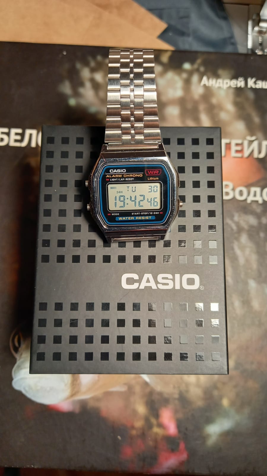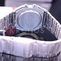Электронные наручные часы в серебристо-чёрной гамме станут прекрасным дополнением к деловому, повседневному, спортивному образу. Ударопрочный корпусУдаропрочный корпусМеханизм заключён в корпус, выполненный из современных материалов, устойчивых к ударам, механическим повреждениям и падению с высоты: инновационный пластик, карбон, нержавеющая сталь, титан. 8-угольной формы навевает воспоминания о первых моделях Casio. Стильно смотрится браслет из высококачественной нержавеющей стали 316L. Стекло из пластика отличается прочностью и легко полируется в случае появления царапины. Срок службы батарейки составляет 7 лет. Светодиодная подсветкаСветодиодная подсветкаСветодиодная или LED-подсветка обеспечивает появление яркого холодного свечения за счёт LED-элементов - маленьких лампочек. Они потребляют минимальное количество энергии, чаще всего можно встретить 1 светодиод, в нижней части циферблата.. Будильник, секундомер, автоматический календарь до 2099 года. Габариты: 33,2 x 36,8 x 8,2 мм.