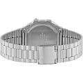 Стильные мужские наручные часы с будильником и секундомером. Корпус - Пластиковый; Стекло - Пластик; Водозащита - 30 м. (WR 30); Материал ремешка - Нержавеющая сталь; Цвет ремешка - Серебристый; Цвет циферблата - Lcd.