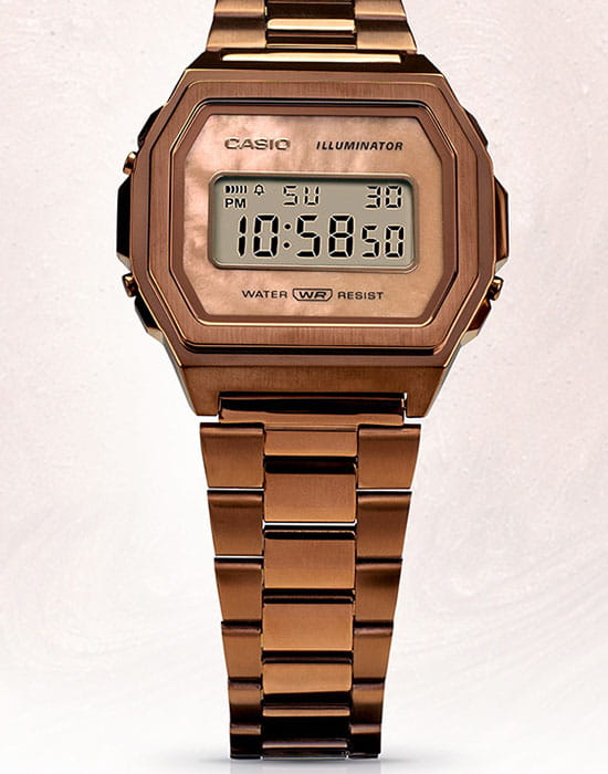 Аксессуар с фирменным для Casio 8-угольным корпусом будет гармонично смотреться как с деловым пиджаком, так и с повседневной водолазкой. Оригинальности добавляет переливающийся цифровой дисплей. Корпус и браслет сделаны из нержавеющей стали 316L с IP-покрытиемIP-покрытиеМетод ионного напыления. Демонстрирует повышенную устойчивость к истиранию, окислению и химическим веществам. Под воздействием высокого давления и температуры около 1500°C молекулы металла надёжно соединяются с частицами корпуса часов., выполняющим декоративную и защитную функцию. Надёжное минеральное стекло. Срок работы батарейки - 3 года. Наличие будильника, секундомера, календаря. Светодиодная подсветкаСветодиодная подсветкаСветодиодная или LED-подсветка обеспечивает появление яркого холодного свечения за счёт LED-элементов - маленьких лампочек. Они потребляют минимальное количество энергии, чаще всего можно встретить 1 светодиод, в нижней части циферблата. дисплея. Габариты: 38 x 39,6 x 7,3 мм.