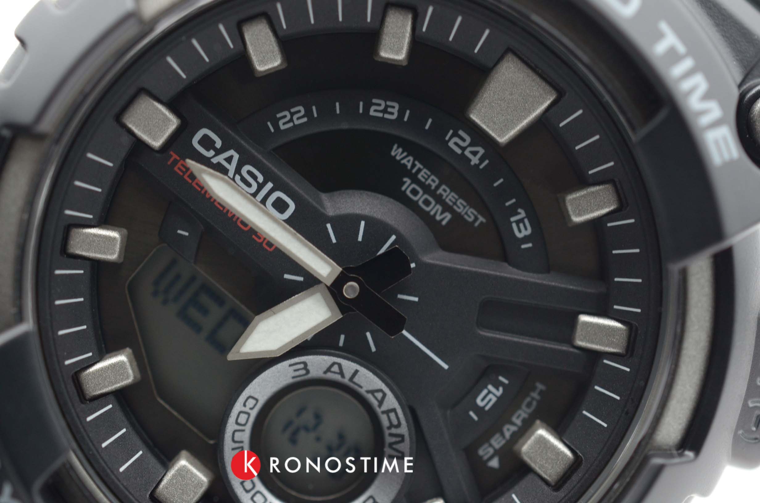 Стильные и долговечные часы от Casio выполнены высокопрочных и качественных полимерных материалов. Есть записная книжка, которая может сохранять до 30 контактов. Таймер и 3 ежедневных будильника не позволят пропустить ни одно важное событие. Время отображается в 12- и 24-часовом форматах. Подсветка NeobriteПодсветка NeobriteИспользование светонакопительных составов на основе сульфида цинка или алюмината стронция, яркий свет можно наблюдать на протяжении 6-10 часов после «зарядки» часов около источника света.. Есть сплит-хронограф. Высокая водонепроницаемость в 100 WR идеально подходит для плавания.