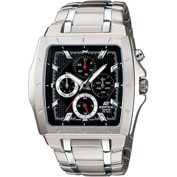 Мужские классические наручные часы Casio Edifice надежные и практичные. Кварцевый японский механизм Miyota. Точность хода не хуже -10 +15 сек./в месяц. Часы оснащены календарем и 24х часовым форматом времени. Циферблат черного цвета с контрастными индексами. Стрелки и индексы с светонакопительным нанесением. Корпус и браслет выполнены из высококачественной стали с антикоррозийными свойствами. Минеральное стекло устойчиво к появлению царапин. Водонепроницаемость 100М. В часах можно плавать. Степень водонепроницаемости не является величиной, эквивалентной функциональной рабочей глубине.