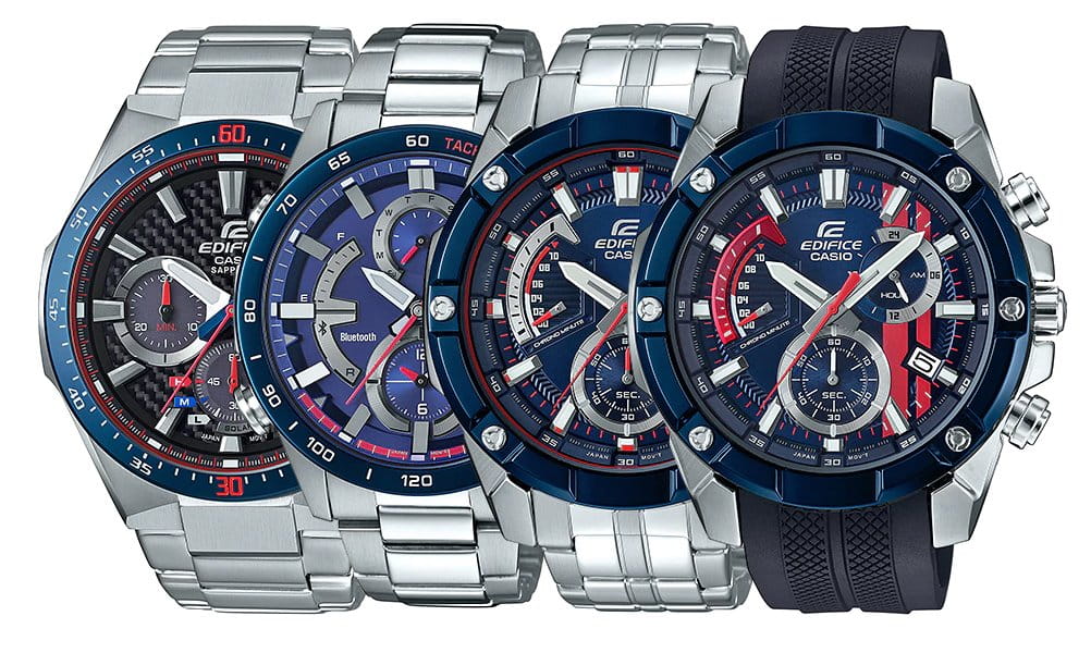 Фанатам гоночной команды Scuderia Toro Rosso [которая уже давно сотрудничает с Касио] самое время порадоваться — японцы показали новую лимитированную серию, посвященную итальянским гонщикам [под эгидой бренда Red Bull]. Партнерство с подобными спортивными брендами уже стало традицией для касиовцев. Подборка состоит из четырех последних моделей Edifice разных ценовых сегментов —EQB-900TR-2A, EFS-S520TR-1A, EFR-559TRP-2A и EFR-559TR-2A.