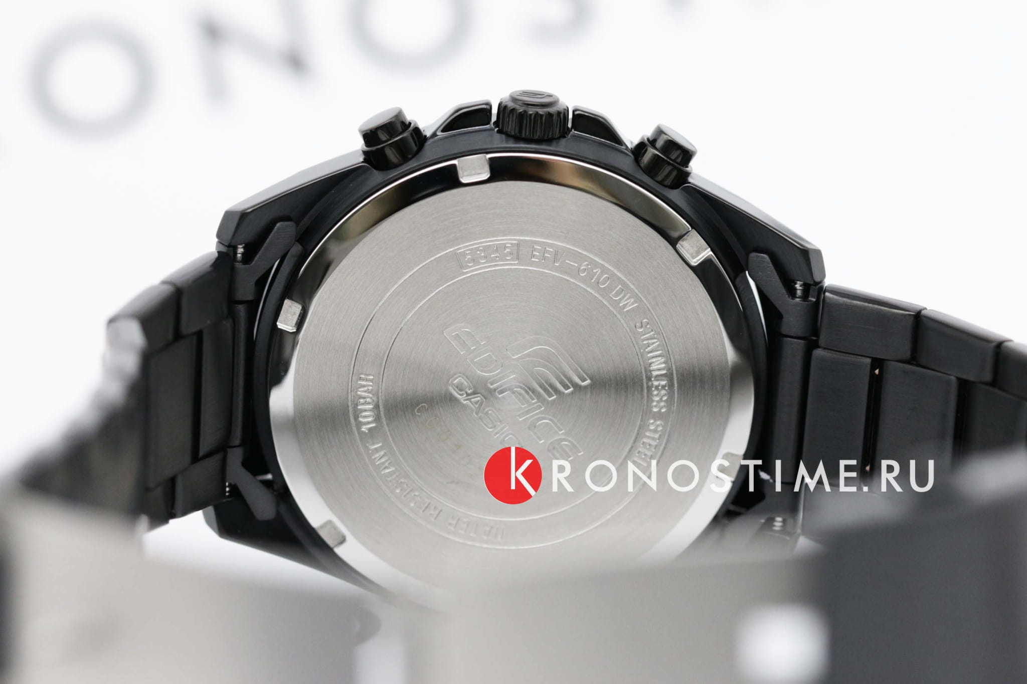 Мужские японские часы c хронографомХронографФункция позволяет измерять отрезки времени с особой точностью: часы, минуты, секунды. Верным признаком хронографа является наличие на циферблате 3 дополнительных окошек-счётчиков. Casio Edifice EFV-610DC-1A, кварцевый механизм с высокой точностью. Класс водозащиты: 100 метров, позволит плавать, нырять и заниматься другими водными видами спорта. Корпус часов изготовлен из стали с IP-покрытиемIP-покрытиеМетод ионного напыления. Демонстрирует повышенную устойчивость к истиранию, окислению и химическим веществам. Под воздействием высокого давления и температуры около 1500°C молекулы металла надёжно соединяются с частицами корпуса часов.. Подсветка NeobriteПодсветка NeobriteИспользование светонакопительных составов на основе сульфида цинка или алюмината стронция, яркий свет можно наблюдать на протяжении 6-10 часов после «зарядки» часов около источника света. обеспечивает длительное послесвечение в темноте даже после кратковременного нахождения на свету. Часы-хронографХронографФункция позволяет измерять отрезки времени с особой точностью: часы, минуты, секунды. Верным признаком хронографа является наличие на циферблате 3 дополнительных окошек-счётчиков. с секундомеромСекундомерСекундоме́р — прибор, способный измерять интервалы времени с точностью до долей секунды. с точностью показаний 1/10с и временем измерения 1ч. Циферблат с окошком даты. Заводная головка с защитой. Задняя крышка с винтовым фиксатором. Раскладная застёжкаРаскладная застёжкаТакой тип застёжки используется только на браслетах из металла. Она никогда не раскрывается полностью, происходит разделение на 2 и более частей. Раскладывающая застёжка снизит вероятность потери часов к минимуму., расстегиваемая одним касанием. Предохранительная защелка на браслете препятствует случайному расстегиванию.