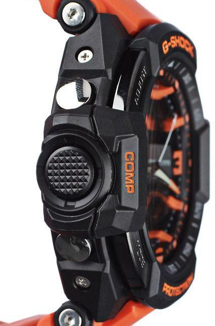 Термометром (-10°C / +60°C); Цифровым компасом; Неоновой подсветкой. Светодиодная лампочка внутри часов испускает ультрафиолетовый свет. Циферблат и стрелки часов  покрыты флуоресцентным материалом. Функцией секундомера. Таймером обратного отсчета с функцией автоповтора. Максимальное время измерения 60 минут; Будильником (5 установок); Функцией повтора сигнала будильника. Автоматическим календарем; Функцией мирового времени; Особая ударопрочная конструкция защищает от ударов и вибрации. Минеральное стекло устойчивое к возникновению царапин. Ремешок из полимерного материала. Натуральный полимерный материал является идеальным для изготовления ремешка благодаря своей чрезвычайной прочности и гибкости. Корпус выполнен из высококачественного пластика с алюминиевым безелем. Задняя крышка стальная.