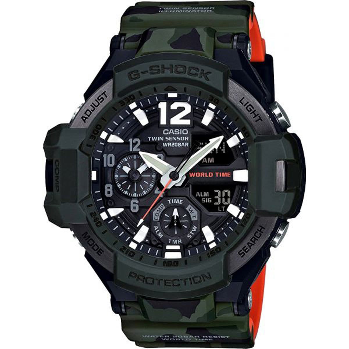 Компания Casio выпустила новинку в коллекции Olive Drab на основе модели GA-1100. Эти часы- новое поколение часов, разработанных специально для пилотов. Главной особенностью GA-1100 является уникальная функция управления мировым временем - часы способны отображать значения времени в двух городах одновременно, с помощью стрелки минут, часов и на встроенном дисплее. Часы просты в управлении и позволяют одним нажатием кнопки узнать время отлета и предполагаемого прибытия в пункт назначения, отследить температуру в кабине самолета и на взлетно-посадочной полосе и определить текущее месторасположение по встроенному компасу. Помимо этого, модель GA-1100 оснащена сверхъяркой подсветкой LED, что позволяет использовать часы вне зависимости от степени освещенности помещения.