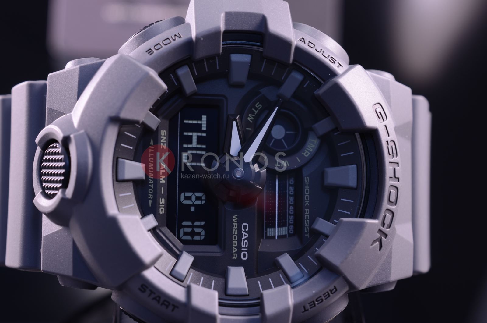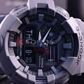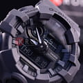 Аналого-цифровая модель в лаконичном сером исполнении идеально подойдёт для ношения в любой ситуации, гармонично смотрится контрастный циферблат с крупными элементами дизайна. Часы в стиле милитари из серии GA-700 обладают противоударным корпусомУдаропрочный корпусМеханизм заключён в корпус, выполненный из современных материалов, устойчивых к ударам, механическим повреждениям и падению с высоты: инновационный пластик, карбон, нержавеющая сталь, титан. из полимерного пластика, стойко переносящим любые механические повреждения. Батарейка рассчитана на 5 лет службы. Водонепроницаемость до 20 бар. Минеральное стекло устойчиво к появлению царапин. ЛюминесцентнаяЛюминесцентное покрытиеПозволяет считывать показания времени в темноте. Производители наносят на стрелки, часовые индексы, безель или поверхность циферблата светонакопительный состав, дающий холодное свечение. и светодиодная подсветкаСветодиодная подсветкаСветодиодная или LED-подсветка обеспечивает появление яркого холодного свечения за счёт LED-элементов - маленьких лампочек. Они потребляют минимальное количество энергии, чаще всего можно встретить 1 светодиод, в нижней части циферблата.. Дополнительные возможности: функция перемещения стрелок, включение и выключение звука кнопок, секундомер, мировое времяМировое время Полезное часовое усложнение, отображающее время в основных городах и известных областях по всему миру, оно связано с часовыми поясами, удобно для путешественников и бизнесменов. , таймер с автоповтором, UTCUTCВсемирное кординационное время, не имеющее привязки к географическому положению Гринвича, основывается на атомном отсчёте времени. Регулировка времени осуществляется более точно, чем устаревшее GMT.