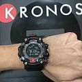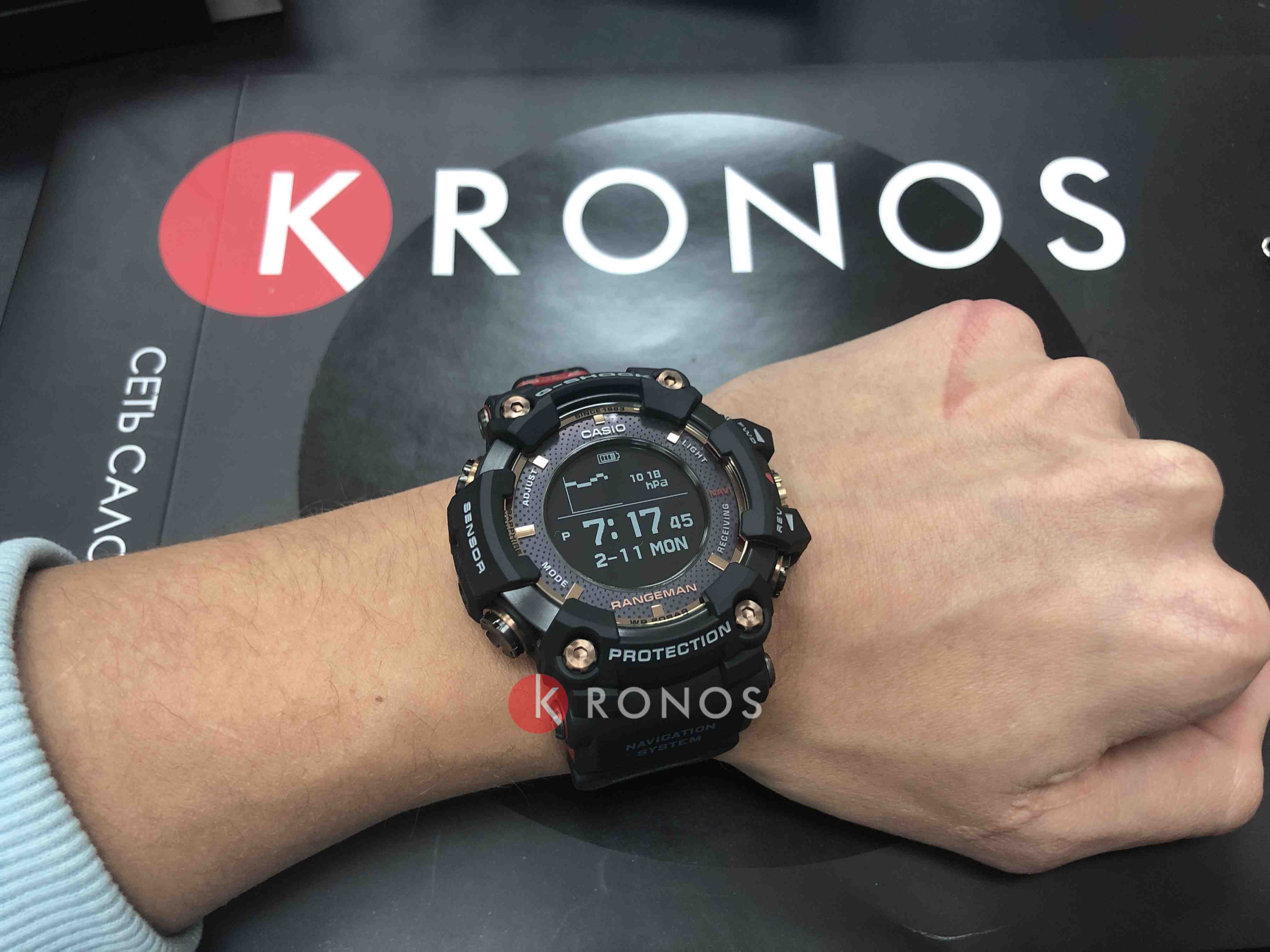 Дизайн отсылается к опасным и завораживающим потокам лавы, цветовая палитра выражена в чёрном, красном, золотом оттенках. Модель выдержит любые погодные условия и температуру до -20°C, ей не страшны удары, вибрации и падения с высоты. Массивные и брутальные часы стильно смотрятся на руке, не вызывая дискомфорта при ношении. Идеальным дополнением стал ремешок из карбона и полимера cо внутренней стороной красного цвета. Аксессуар станет универсальным помощником в путешествиях и походах, ведь в вашем распоряжении появляется множество функций: цифровой компас, хронографХронографФункция позволяет измерять отрезки времени с особой точностью: часы, минуты, секунды. Верным признаком хронографа является наличие на циферблате 3 дополнительных окошек-счётчиков., будильник, барометр, высотомер, лунный календарь, GPS, термометр, Bluetooth-синхронизацияBluetoothСовременная технология, позволяющая синхронизировать часы с телефоном и переносить данные. Часы с Bluetooth расширяют возможности вашего смартфона и делают его использование ещё более удобным., а также функция энергосбережения. Стальной безельБезельВнешний ободок, закрепляющий стекло. В спортивных часах так называется поворотное кольцо с делениями на циферблате, выполняет роль таймера – замеряет отрезки времени на шкале. Неподвижный безель – элемент декора. Однонаправленно вращающийся безель на дайверских часах позволяет фиксировать моменты погружения и выныривания на поверхность. с IP-покрытиемIP-покрытиеМетод ионного напыления. Демонстрирует повышенную устойчивость к истиранию, окислению и химическим веществам. Под воздействием высокого давления и температуры около 1500°C молекулы металла надёжно соединяются с частицами корпуса часов.. Технология . Стекло из сапфира с антибликовым покрытием. Подсветка циферблата. Водостойкость 200 метров. Габариты: 60,3 x 57,7 x 20,2 мм.