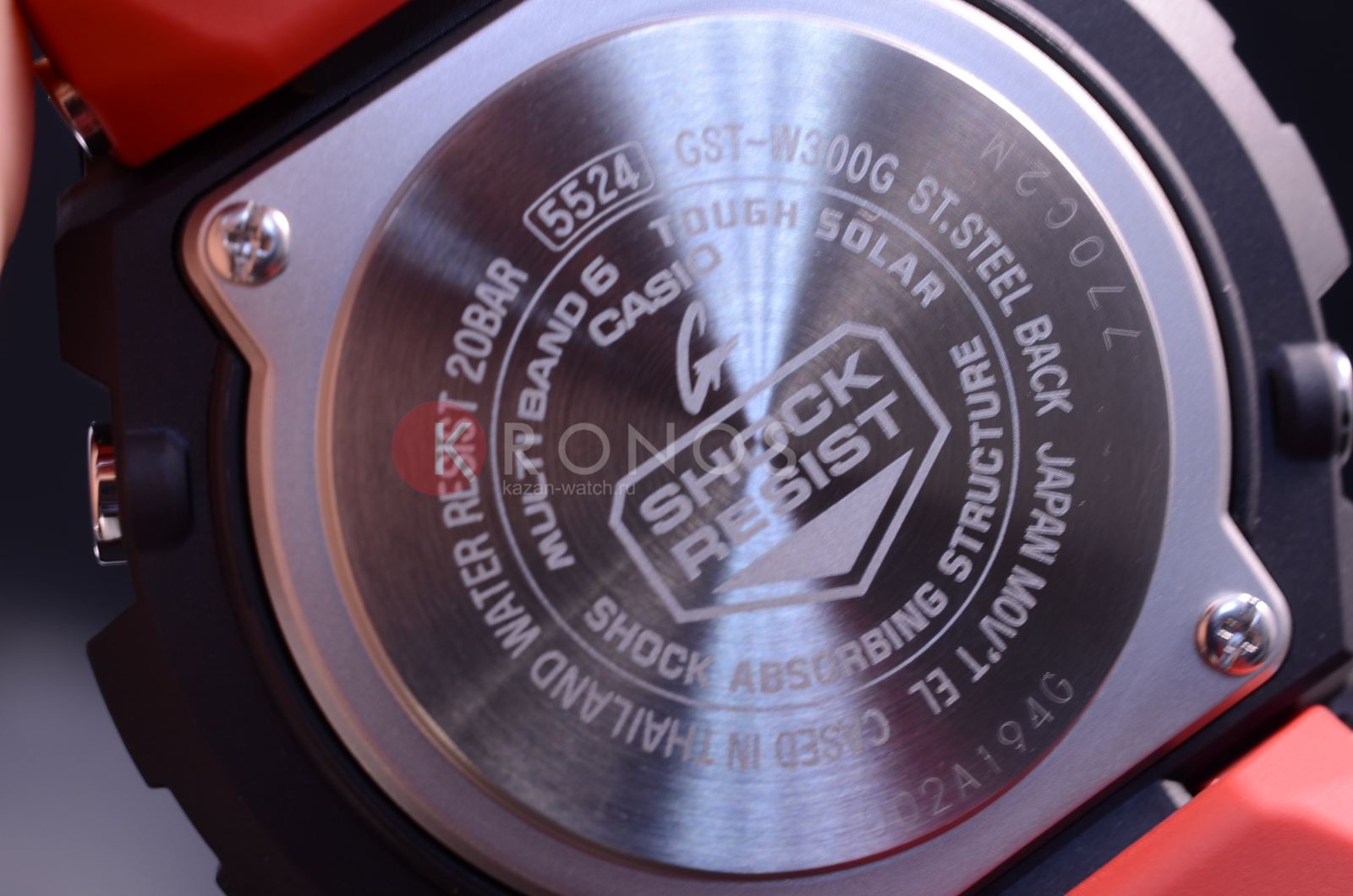 Брендовая модель серии G-Steel представлена в оригинальном исполнении, дизайнеры акцентировали внимание на внушительном безелеБезельВнешний ободок, закрепляющий стекло. В спортивных часах так называется поворотное кольцо с делениями на циферблате, выполняет роль таймера – замеряет отрезки времени на шкале. Неподвижный безель – элемент декора. Однонаправленно вращающийся безель на дайверских часах позволяет фиксировать моменты погружения и выныривания на поверхность. с IP-покрытиемIP-покрытиеМетод ионного напыления. Демонстрирует повышенную устойчивость к истиранию, окислению и химическим веществам. Под воздействием высокого давления и температуры около 1500°C молекулы металла надёжно соединяются с частицами корпуса часов.. Стильным дополнением стал красный каучуковый ремешок, обеспечивающий комфортное ношение. Это часы на солнечной батарее , позволяющие забыть о необходимости завода. Люминесцентная подсветкаЛюминесцентное покрытиеПозволяет считывать показания времени в темноте. Производители наносят на стрелки, часовые индексы, безель или поверхность циферблата светонакопительный состав, дающий холодное свечение. стрелок, яркая светодиодная подсветкаСветодиодная подсветкаСветодиодная или LED-подсветка обеспечивает появление яркого холодного свечения за счёт LED-элементов - маленьких лампочек. Они потребляют минимальное количество энергии, чаще всего можно встретить 1 светодиод, в нижней части циферблата. дисплея. Ударопрочный корпусУдаропрочный корпусМеханизм заключён в корпус, выполненный из современных материалов, устойчивых к ударам, механическим повреждениям и падению с высоты: инновационный пластик, карбон, нержавеющая сталь, титан. из пластика и хирургической стали 316L. Водостойкость 20 бар. Таймер, секундомер, будильник, мировое времяМировое время Полезное часовое усложнение, отображающее время в основных городах и известных областях по всему миру, оно связано с часовыми поясами, удобно для путешественников и бизнесменов. , автоматический календарь, приём радиосигнала для корректировки времени, хронографХронографФункция позволяет измерять отрезки времени с особой точностью: часы, минуты, секунды. Верным признаком хронографа является наличие на циферблате 3 дополнительных окошек-счётчиков.. Габариты: 55,9 x 49,3 x 15,3 мм.