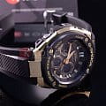 Аксессуар линейки G-Steel отлично смотрится на широком мужском запястье, массивный тёмный циферблат с крупными золотистыми деталями станет превосходным дополнением для повседневного образа. Это часы на солнечной батарее с технологией , включённая функция сохранения энергии увеличивает время работы аккумулятора без подзарядки до 18 месяцев. Ударопрочный корпусУдаропрочный корпусМеханизм заключён в корпус, выполненный из современных материалов, устойчивых к ударам, механическим повреждениям и падению с высоты: инновационный пластик, карбон, нержавеющая сталь, титан. отличается необычной двухслойной конструкцией, амортизационная полимерная прокладка располагается между пластами из нержавеющей стали 316L. Это обеспечивает появление максимальной устойчивости к ударам и повреждениям. Светодиодная подсветкаСветодиодная подсветкаСветодиодная или LED-подсветка обеспечивает появление яркого холодного свечения за счёт LED-элементов - маленьких лампочек. Они потребляют минимальное количество энергии, чаще всего можно встретить 1 светодиод, в нижней части циферблата. циферблата, стрелки с люминесцентным покрытиемЛюминесцентное покрытиеПозволяет считывать показания времени в темноте. Производители наносят на стрелки, часовые индексы, безель или поверхность циферблата светонакопительный состав, дающий холодное свечение.. Прочный каучуковый ремешок. Минеральное стекло. Водостойкость 20 бар. Частичный цветной IP-финишIP-покрытиеМетод ионного напыления. Демонстрирует повышенную устойчивость к истиранию, окислению и химическим веществам. Под воздействием высокого давления и температуры около 1500°C молекулы металла надёжно соединяются с частицами корпуса часов. корпуса. Функции: автоматический календарь, будильник, хронографХронографФункция позволяет измерять отрезки времени с особой точностью: часы, минуты, секунды. Верным признаком хронографа является наличие на циферблате 3 дополнительных окошек-счётчиков., секундомер, мировое времяМировое время Полезное часовое усложнение, отображающее время в основных городах и известных областях по всему миру, оно связано с часовыми поясами, удобно для путешественников и бизнесменов. , таймер обратного отсчёта, UTCUTCВсемирное кординационное время, не имеющее привязки к географическому положению Гринвича, основывается на атомном отсчёте времени. Регулировка времени осуществляется более точно, чем устаревшее GMT.