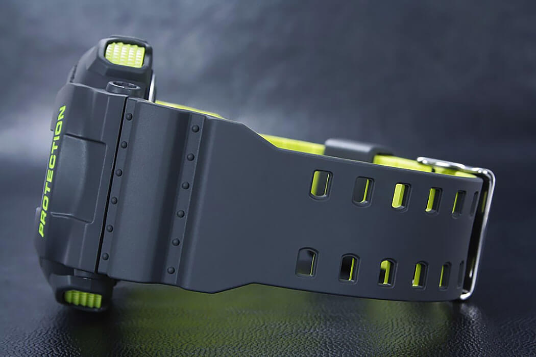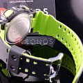 Аксессуар в спортивном стиле отличается необычным многоуровневым циферблатом, крупными деталями, оригинальными перфорированными стрелками. Привлекательности добавляет ремешок с ярко-зеленой внутренней стороной. Наручные часы могут похвастаться противоударным корпусомУдаропрочный корпусМеханизм заключён в корпус, выполненный из современных материалов, устойчивых к ударам, механическим повреждениям и падению с высоты: инновационный пластик, карбон, нержавеющая сталь, титан. из полимерного пластика, материал устойчив к повреждениям любого характера. Японский высокоточный кварцевый механизм. Аккумулятор с 2-годичным сроком службы. Светодиодная подсветкаСветодиодная подсветкаСветодиодная или LED-подсветка обеспечивает появление яркого холодного свечения за счёт LED-элементов - маленьких лампочек. Они потребляют минимальное количество энергии, чаще всего можно встретить 1 светодиод, в нижней части циферблата.. Надёжное минеральное стекло. Защита от влияния магнитного поля. Водостойкость 20 бар. ХронографХронографФункция позволяет измерять отрезки времени с особой точностью: часы, минуты, секунды. Верным признаком хронографа является наличие на циферблате 3 дополнительных окошек-счётчиков., автоматический календарь, таймер, функция мирового времениМировое время Полезное часовое усложнение, отображающее время в основных городах и известных областях по всему миру, оно связано с часовыми поясами, удобно для путешественников и бизнесменов. - 29 часовых поясов, ежечасный сигнал, будильник, возможность высчитать среднюю скорость пройденного расстояния, секундомер со звуковым сигналом, UTCUTCВсемирное кординационное время, не имеющее привязки к географическому положению Гринвича, основывается на атомном отсчёте времени. Регулировка времени осуществляется более точно, чем устаревшее GMT.