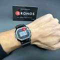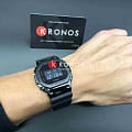 Дизайнеры оснастили модель узнаваемым легендарным ударопрочным корпусомУдаропрочный корпусМеханизм заключён в корпус, выполненный из современных материалов, устойчивых к ударам, механическим повреждениям и падению с высоты: инновационный пластик, карбон, нержавеющая сталь, титан., эксклюзивной деталью стал безельБезельВнешний ободок, закрепляющий стекло. В спортивных часах так называется поворотное кольцо с делениями на циферблате, выполняет роль таймера – замеряет отрезки времени на шкале. Неподвижный безель – элемент декора. Однонаправленно вращающийся безель на дайверских часах позволяет фиксировать моменты погружения и выныривания на поверхность. из нержавеющей стали с IP-покрытиемIP-покрытиеМетод ионного напыления. Демонстрирует повышенную устойчивость к истиранию, окислению и химическим веществам. Под воздействием высокого давления и температуры около 1500°C молекулы металла надёжно соединяются с частицами корпуса часов.. Такое исполнение в несколько раз повысило устойчивость к ударам и повреждениям с сохранением лёгкого веса. Кварцевый японский механизм работает от батарейки, рассчитанной на 2 года. Упрощённый и быстрый механизм замены ремешка. Электролюминесцентная подсветкаЭлектролюминесцентная подсветкаЭлектролюминесцентная панель устанавливается под ЖК-экраном часов, при нажатии кнопки электричество преобразуется в свет за счёт подачи напряжения на атомы фосфора, такой тип подсветки позволяет освещать весь циферблат. сине-зелёного цвета. Минеральное стекло. Водонепроницаемость 200 метров. Дополнительные возможности: будильник со световым сигналом, хронографХронографФункция позволяет измерять отрезки времени с особой точностью: часы, минуты, секунды. Верным признаком хронографа является наличие на циферблате 3 дополнительных окошек-счётчиков., автоматический календарь до 2039 года, мировое времяМировое время Полезное часовое усложнение, отображающее время в основных городах и известных областях по всему миру, оно связано с часовыми поясами, удобно для путешественников и бизнесменов. , секундомер, таймер с автоповтором. Габариты: 49,6 x 43,2 x 12,9 мм.