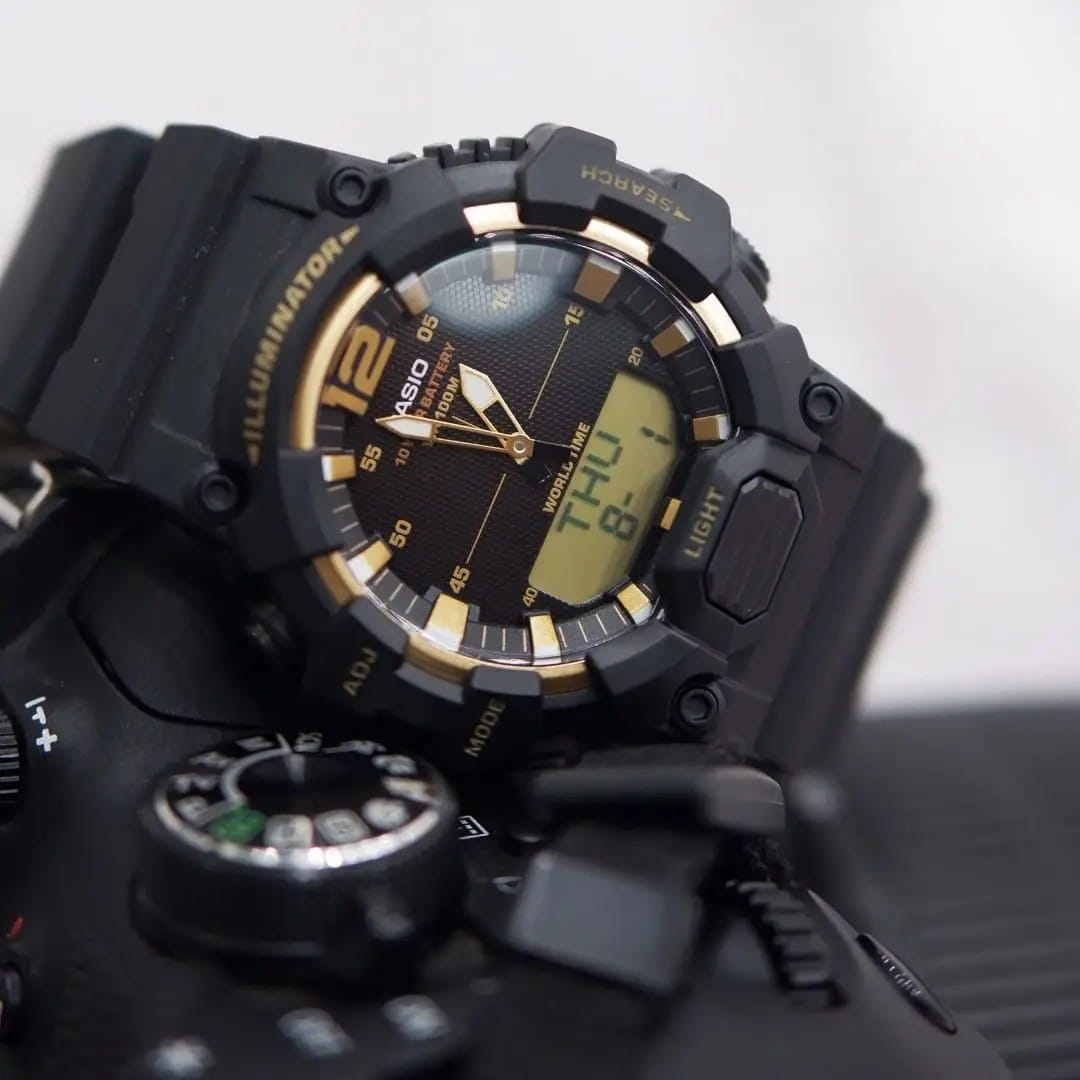Спортивные японские мужские наручные часы с хронографомХронографФункция позволяет измерять отрезки времени с особой точностью: часы, минуты, секунды. Верным признаком хронографа является наличие на циферблате 3 дополнительных окошек-счётчиков. Casio Collection HDC-700-9A, кварцевый механизм с высокой точностью. Класс водозащиты: 100 метров, позволит плавать, нырять и заниматься другими водными видами спорта. Корпус часов изготовлен из пластика. Пластиковый ремешок на стандартной застёжке. Циферблат подсвечивается светодиодомСветодиодная подсветкаСветодиодная или LED-подсветка обеспечивает появление яркого холодного свечения за счёт LED-элементов - маленьких лампочек. Они потребляют минимальное количество энергии, чаще всего можно встретить 1 светодиод, в нижней части циферблата.. Записная книжка на 30 ячеек памяти для записи имен и телефонных номеров, каждая запись может включать в себя текст из 8 букв и 16 цифр. Мировое времяМировое время Полезное часовое усложнение, отображающее время в основных городах и известных областях по всему миру, оно связано с часовыми поясами, удобно для путешественников и бизнесменов. – 30 городов (29 часовых поясов). Функция включения/отключения летнего времени. 12-ти и 24-х часовой формат времени. СекундомерСекундомерСекундоме́р — прибор, способный измерять интервалы времени с точностью до долей секунды. с точностью показаний 1/100с и временем измерения 24ч. Сплит-хронографХронографФункция позволяет измерять отрезки времени с особой точностью: часы, минуты, секунды. Верным признаком хронографа является наличие на циферблате 3 дополнительных окошек-счётчиков.. ТаймерТаймерОтсчитывает секунды в обратном направлении в заданном интервале времени. обратного отсчета от 1мин до 24ч. Функция включения/отключения звука.
