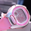 Аккуратный корпус сделан из прочного полимерного пластика. В часах установлен дополнительный циферблат мирового времени, и поэтому их обладатель может следить за временем из второй часовой зоны. Защита часов обеспечивается акриловым стеклом выпуклой формы. Встроенный будильник с настраиваемым звуковым сигналом. Механизм часов - электронный. Срок службы батарейки равен 10 годам. Водонепроницаемость - 50 WR. Вес аксессуара составляет 20 грамм.