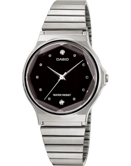 Японские часы CASIO MQ-1000 для женщин. Циферблат украшен настоящим бриллиантом. Круглый полимерный корпус с долговечным гальваническим покрытием и стальной браслет. Полимерное стекло выпуклой формы с ювелирной огранкой. Точный кварцевый механизм.