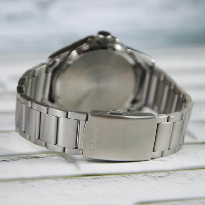 Модный аксессуар от Casio призван покорить сердца ценителей комфорта и практичности. Прочный серебристый корпус из нержавеющей стали плавно отражает падающий свет. Элегантный браслет со звеньями прочно закрепляется на запястье с помощью застежки с тройным сгибом. Яркий дизайн циферблата и временных показателей смотрится привлекательно. Арабские цифры и штрихи крупной формы призваны облегчить определение времени. Есть аккуратное окошечко с календарем. Подсветка NeobriteПодсветка NeobriteИспользование светонакопительных составов на основе сульфида цинка или алюмината стронция, яркий свет можно наблюдать на протяжении 6-10 часов после «зарядки» часов около источника света. обеспечивает видимость показателей в темное время суток. Минеральное стекло. Тип механизма - кварцевый. Батарейка работает 3 года. Водонепроницаемость равна 50 WR.