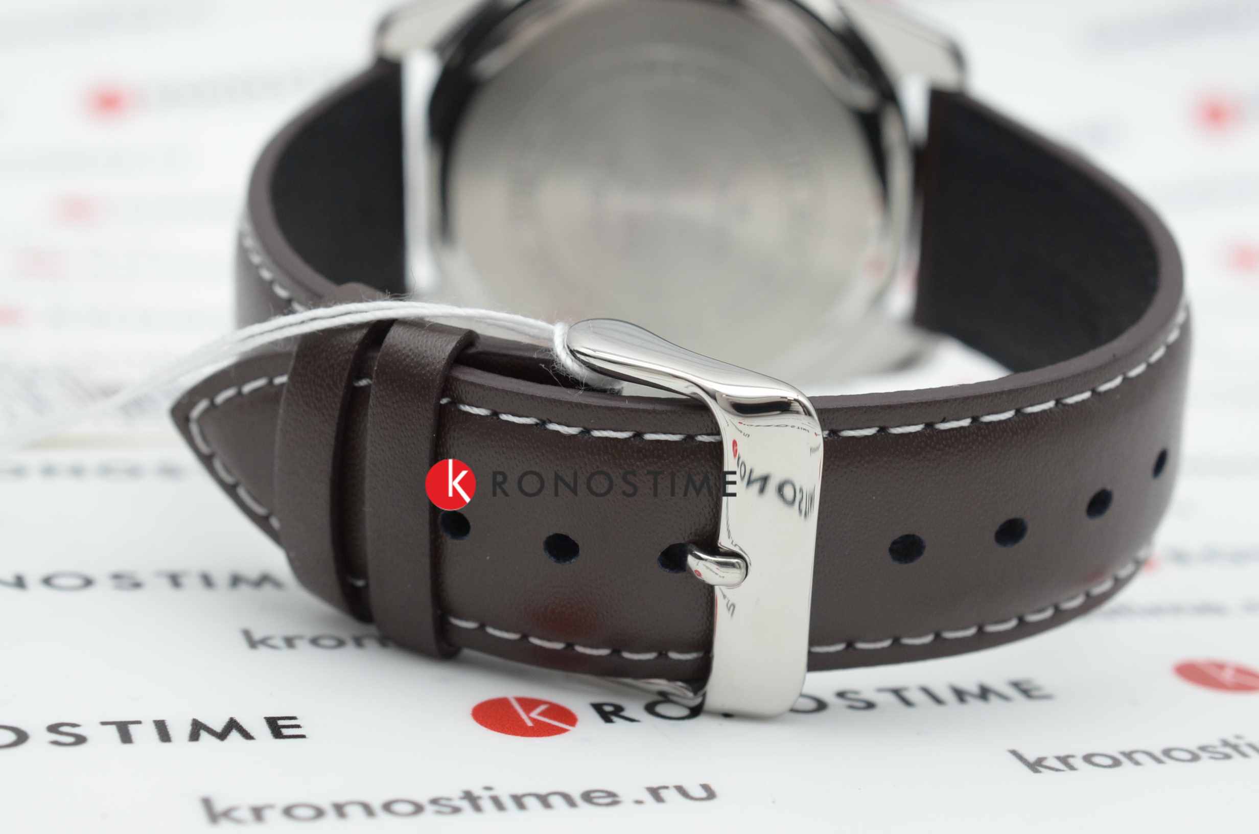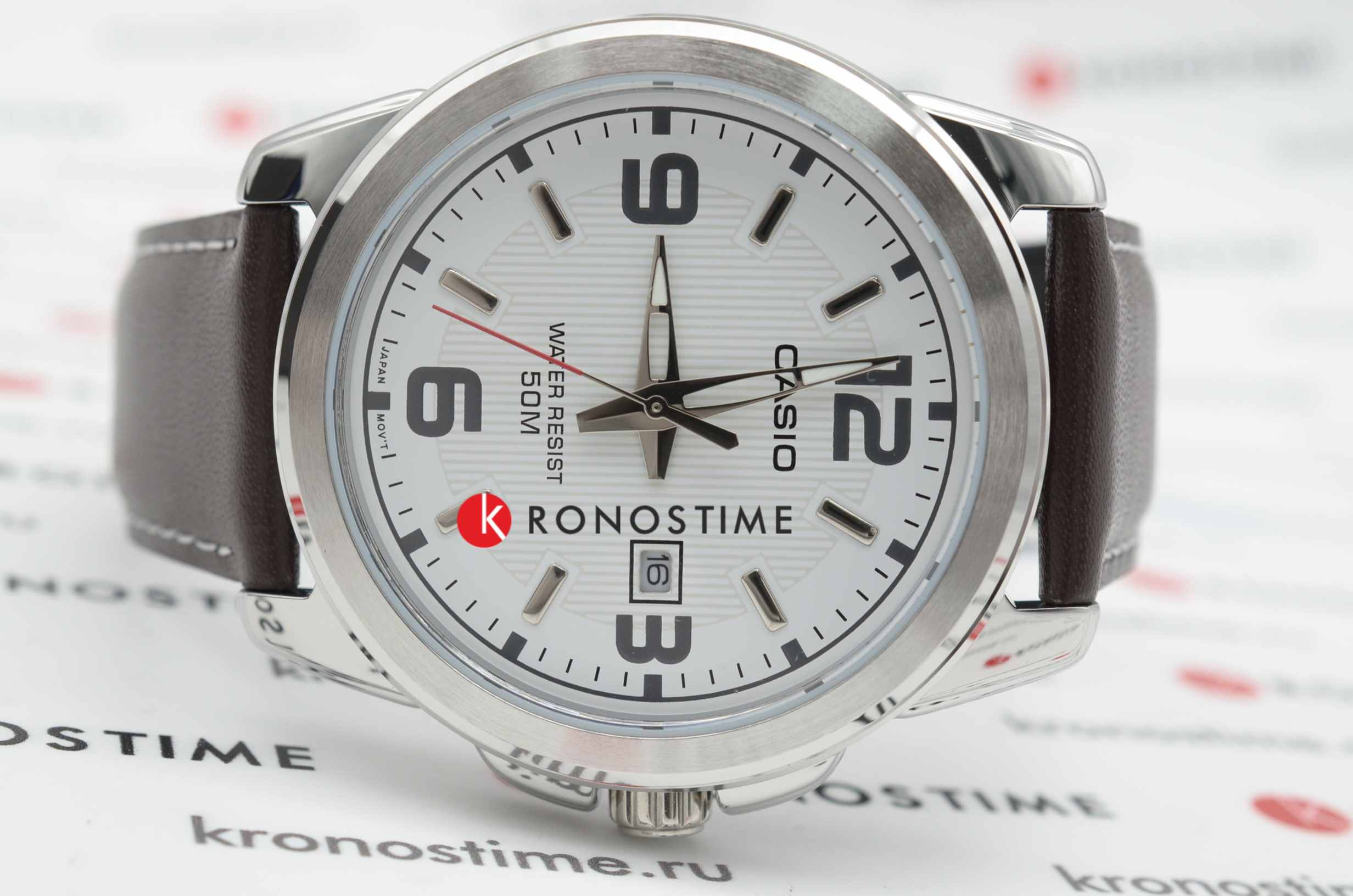 Белый циферблат с серебристыми часовыми метками и стрелками позволяет использовать часы в сочетании с одеждой любого цвета. Корпус из гипоаллергенной латуни отличается лёгкостью, коричневый ремешок из натуральной кожи надёжно обхватывает запястье. Срок службы батарейки для питания кварцевого механизма - 3 года. Люминесцентная подсветкаЛюминесцентное покрытиеПозволяет считывать показания времени в темноте. Производители наносят на стрелки, часовые индексы, безель или поверхность циферблата светонакопительный состав, дающий холодное свечение.. Сохранение водонепроницаемости при давлении до 5 бар. Минеральное стекло. Габариты: 44,9 x 50 x 9,4 мм.