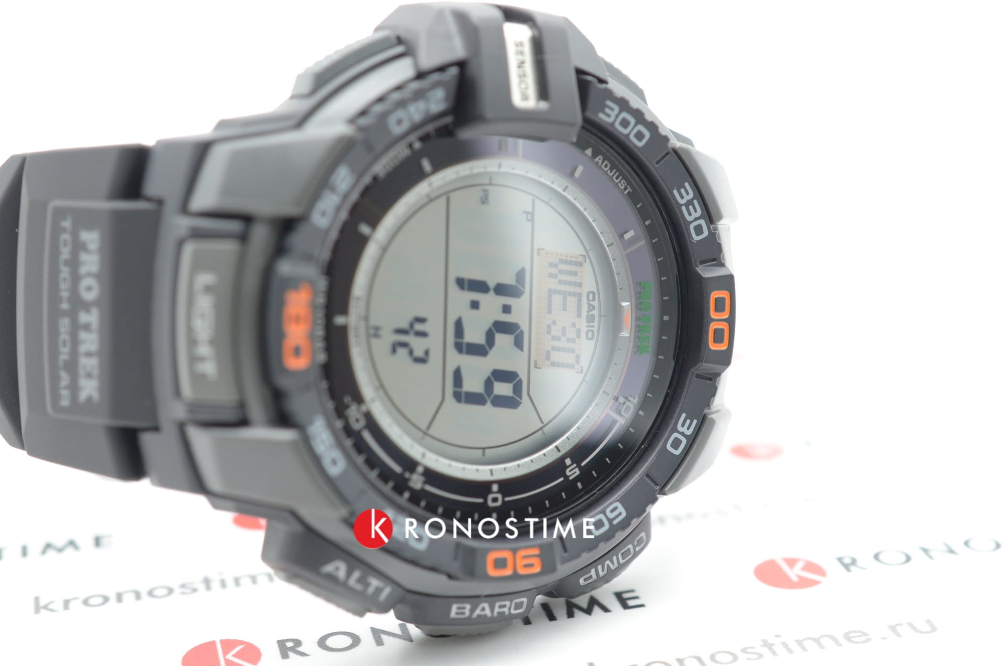 Японский кварцевый механизм получает питание благодаря технологии . Ударопрочный корпусУдаропрочный корпусМеханизм заключён в корпус, выполненный из современных материалов, устойчивых к ударам, механическим повреждениям и падению с высоты: инновационный пластик, карбон, нержавеющая сталь, титан. выполнен из полимерного материала. Светодиодная подсветкаСветодиодная подсветкаСветодиодная или LED-подсветка обеспечивает появление яркого холодного свечения за счёт LED-элементов - маленьких лампочек. Они потребляют минимальное количество энергии, чаще всего можно встретить 1 светодиод, в нижней части циферблата. активируется при повороте запястья. Функции: компас, термометр, мировое времяМировое время Полезное часовое усложнение, отображающее время в основных городах и известных областях по всему миру, оно связано с часовыми поясами, удобно для путешественников и бизнесменов. , отображение восхода и заката солнца, высотомер, барометр, таймер.