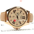 Брендовый аксессуар с отдельными мини-счётчиками выполнен в классическом стиле, крупные римские цифры создают винтажное настроение. Лаконичный циферблат декорирован стразами Swarovski, придающие вашему образу элемент роскоши. Высокоточный кварцевый механизм работает от батарейки, устраняя необходимость завода. Аккумулятор рассчитан на 3 года безупречной работы. Стильно смотрится коричневый ремешок из натуральной кожи. Люминесцентное покрытиеЛюминесцентное покрытиеПозволяет считывать показания времени в темноте. Производители наносят на стрелки, часовые индексы, безель или поверхность циферблата светонакопительный состав, дающий холодное свечение. стрелок. IP-покрытиеIP-покрытиеМетод ионного напыления. Демонстрирует повышенную устойчивость к истиранию, окислению и химическим веществам. Под воздействием высокого давления и температуры около 1500°C молекулы металла надёжно соединяются с частицами корпуса часов. корпуса с розоватым отливом. Минеральное стекло. Функция календаря. Габариты: 39,3 x 44,5 x 8,6 мм.