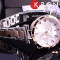 Сверкающий светлый циферблат с утончёнными стрелками заслуживает отдельного внимания. И он, и безельБезельВнешний ободок, закрепляющий стекло. В спортивных часах так называется поворотное кольцо с делениями на циферблате, выполняет роль таймера – замеряет отрезки времени на шкале. Неподвижный безель – элемент декора. Однонаправленно вращающийся безель на дайверских часах позволяет фиксировать моменты погружения и выныривания на поверхность. украшены кристаллами Swarovski, что помогает создать настроение праздника. Оригинально смотрится отдельный календарный счётчик. Кварцевый высокоточный механизм. Корпус и браслет из нержавеющей стали 316L с частичным IP-покрытиемIP-покрытиеМетод ионного напыления. Демонстрирует повышенную устойчивость к истиранию, окислению и химическим веществам. Под воздействием высокого давления и температуры около 1500°C молекулы металла надёжно соединяются с частицами корпуса часов.. Минеральное стекло отличается устойчивостью к царапинам. Водонепроницаемость до 5 бар. Габариты: 37,5 x 32 x 8,7 мм.