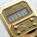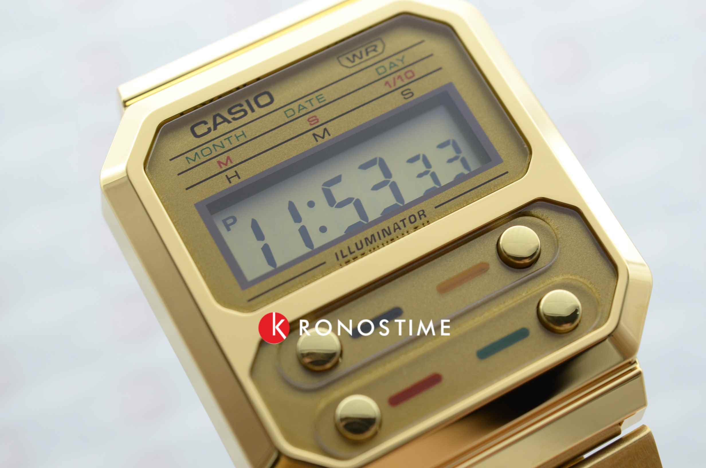 Японские мужские часы с кнопками на лицевой панели Casio Vintage A100WEG-9A, кварцевый механизм с высокой точностью. Класс водозащиты: 30 метров, позволит защитить корпус от случайных брызг или капель дождя. Корпус часов изготовлен из пластика, цвета.