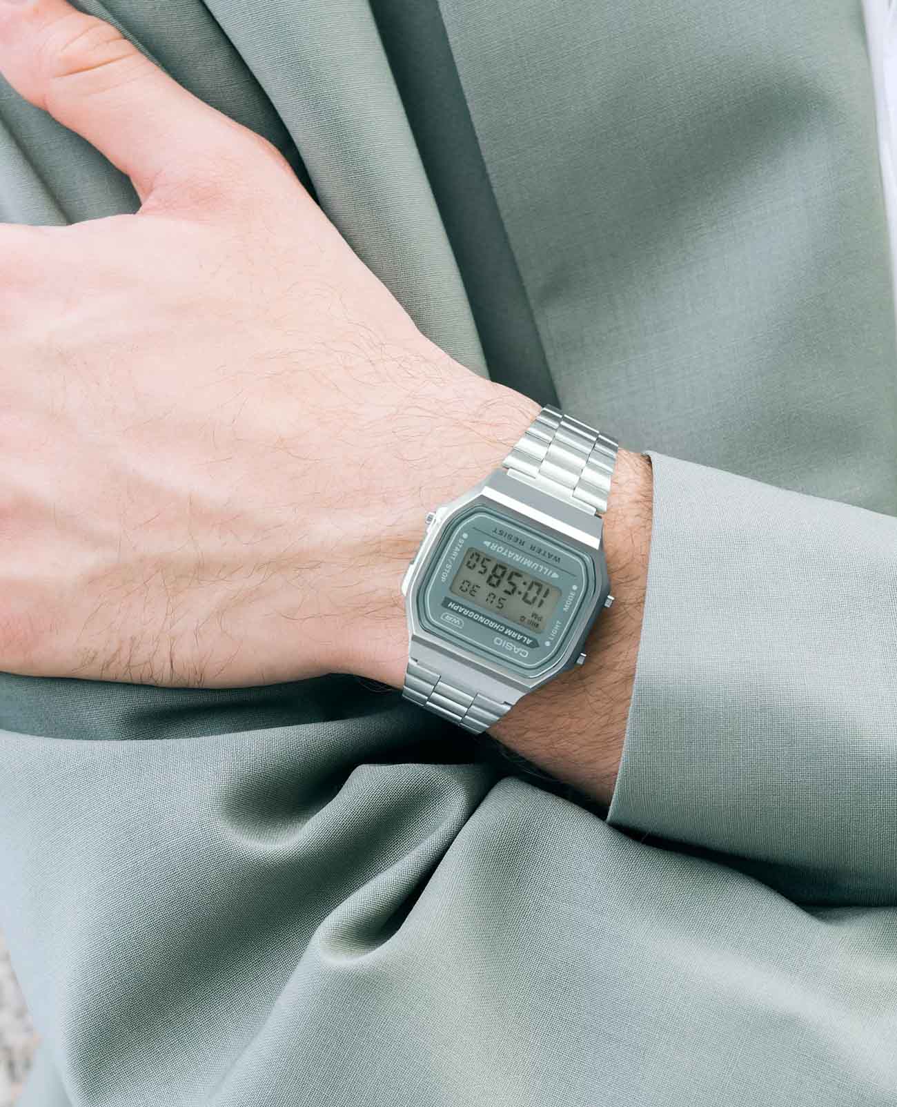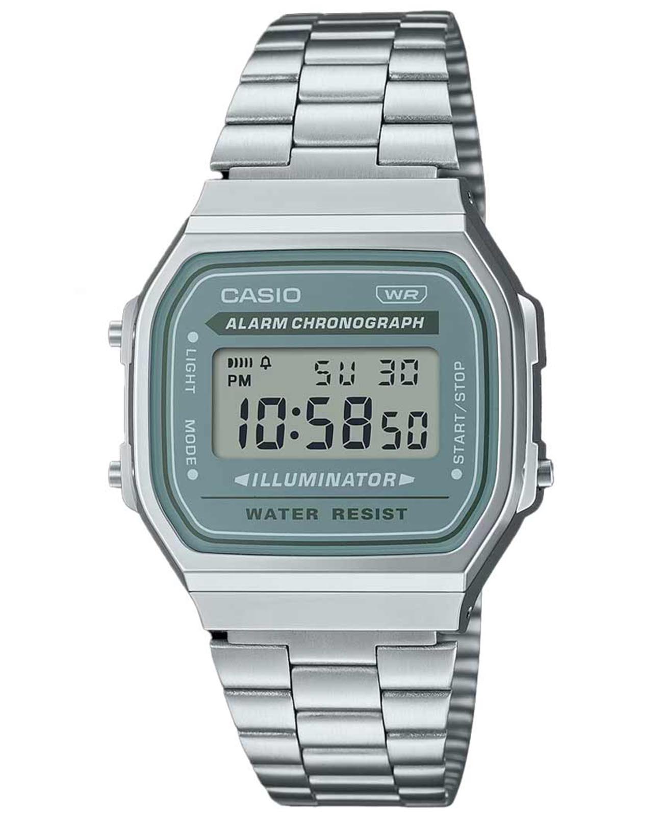 Модель A168WA-3AYDF из коллекции Vintage сочетает винтажный стиль и практичные функции. Корпус из полимерного материала с хромированным покрытием и браслет из нержавеющей стали с регулируемой застёжкойРаскладная застёжкаТакой тип застёжки используется только на браслетах из металла. Она никогда не раскрывается полностью, происходит разделение на 2 и более частей. Раскладывающая застёжка снизит вероятность потери часов к минимуму. обеспечивают удобство и долговечность.