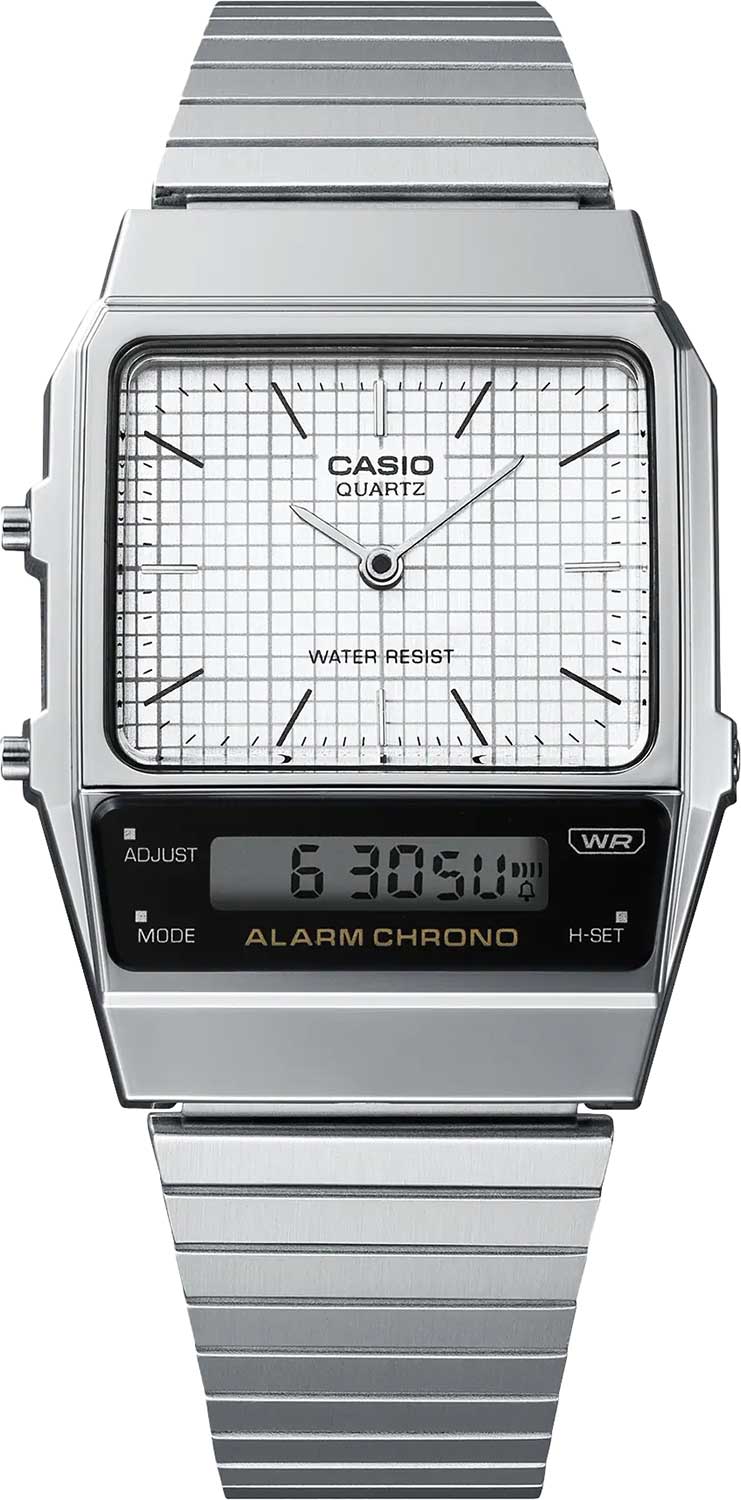 Модель AQ-800E-7ADF из коллекции Vintage гармонично сочетает в себе ретро-дизайн и функциональность. Корпус из полимерного материала с хромированным покрытием и браслет из нержавеющей стали с регулируемой застёжкойРаскладная застёжкаТакой тип застёжки используется только на браслетах из металла. Она никогда не раскрывается полностью, происходит разделение на 2 и более частей. Раскладывающая застёжка снизит вероятность потери часов к минимуму. обеспечивают элегантный внешний вид и удобство при носке.