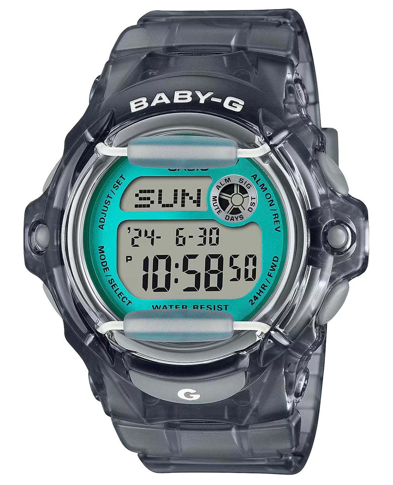 ПротивоударныеУдаропрочный корпусМеханизм заключён в корпус, выполненный из современных материалов, устойчивых к ударам, механическим повреждениям и падению с высоты: инновационный пластик, карбон, нержавеющая сталь, титан. кварцевые женские наручные часы Casio BG-169U-8B коллекции Baby-G с цифровой индикацией времени. Функциональность данной модели: формат времени 12/24, Мировое время Мировое время Полезное часовое усложнение, отображающее время в основных городах и известных областях по всему миру, оно связано с часовыми поясами, удобно для путешественников и бизнесменов. 30 городов (29 часовых поясов), записная книжка телефонных номеров (25 записей), режим отсчета дней до контрольной даты, вечный календарь до 2099 года, функция летнего времени (DST), 5 независимых будильников, сигнал начала часа, секундомерСекундомерСекундоме́р — прибор, способный измерять интервалы времени с точностью до долей секунды. с точностью 1/100 секунды и измерением до 23 часов 59 минут 59,99 cек., таймерТаймерОтсчитывает секунды в обратном направлении в заданном интервале времени. обратного отсчета (диапазон времени 24 часа), диодная подсветка циферблата с функцией послесвечения, функция выключения звука нажатия кнопок (Mute).