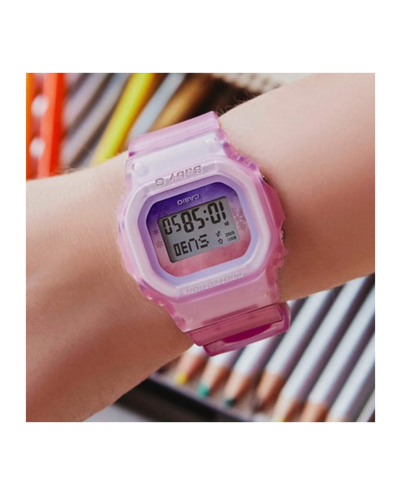 Японские женские часы-хронографХронографФункция позволяет измерять отрезки времени с особой точностью: часы, минуты, секунды. Верным признаком хронографа является наличие на циферблате 3 дополнительных окошек-счётчиков. Casio Baby-G BGD-560WL-4DR из коллекции Baby-G. Минеральное стеклоМинеральное стеклоМинеральное стекло представляет собой искусственно выращенный минерал кварца. Такое стекло отличается особой устойчивостью к повреждениям и царапинам. Уступает по некоторым качествам сапфировому стеклу. устойчивое к появлению царапин, обладающее высокой прозрачностью. Корпус часов изготовлен из полимерного материала. Электролюминесцентная подсветкаЭлектролюминесцентная подсветкаЭлектролюминесцентная панель устанавливается под ЖК-экраном часов, при нажатии кнопки электричество преобразуется в свет за счёт подачи напряжения на атомы фосфора, такой тип подсветки позволяет освещать весь циферблат. освещает весь циферблат, после отпускания кнопки свечение продолжается еще некоторое время. Ударопрочный корпусУдаропрочный корпусМеханизм заключён в корпус, выполненный из современных материалов, устойчивых к ударам, механическим повреждениям и падению с высоты: инновационный пластик, карбон, нержавеющая сталь, титан. защищает механизм от ударов и вибрации. Функция Мирового времениМировое время Полезное часовое усложнение, отображающее время в основных городах и известных областях по всему миру, оно связано с часовыми поясами, удобно для путешественников и бизнесменов. , автоматический переход на зимнее и летнее время, возможность включения/отключения данной функции. СекундомерСекундомерСекундоме́р — прибор, способный измерять интервалы времени с точностью до долей секунды. с точностью измерения 1/100 секунды и измерением до 23 часов 59 минут 59,99 cек. ТаймерТаймерОтсчитывает секунды в обратном направлении в заданном интервале времени. обратного отсчета (диапазон времени 24 часа), автоматический календарь, 12/24 отображение времени, будильникБудильникБуди́льник — часы, в заданный момент времени подающие звуковой, световой и/или в редких случаях другой сигнал.. Функция включения/отключения звука кнопок. Класс водозащиты: 200 метров, позволит плавать, нырять и заниматься другими водными видами спорта. Ремешок из полимерного материала на стандартной застежке.