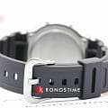 Батарейка рассчитана на 2 года. Водонепроницаемость в соответствии с ISO 2281. Ремешок из полимерного материала с классической застежкой.