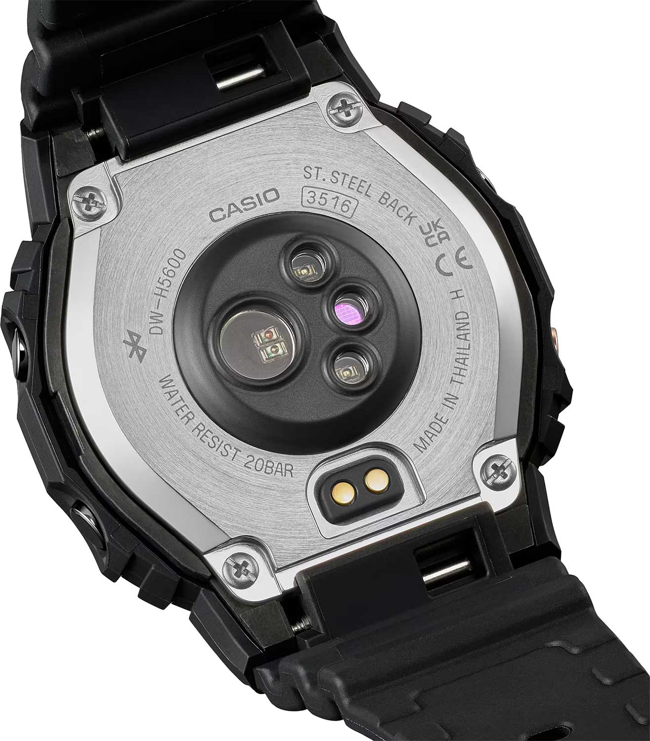 Ваши тренировки выйдут на новый уровень благодаря этой современной новинке от Casio. Японские спортивные наручные часы в серии G-SQUAD из биопластика Casio G-Shock DW-H5600-1DR, кварцевый механизм с высокой точностью. Класс водозащиты: 200 метров, позволит плавать, нырять и заниматься другими водными видами спорта. Корпус часов изготовлен из пластика. Модель в серии G-SQUAD выполнена из биопластика, который изготавливается из возобновляемых органических ресурсов. Мультиспортивный профили: бег, ходьба, езда на велосипеде и др. Питание от солнечной энергии Tough SolarTough SolarТехнология основана на подзарядке аккумулятора от источника солнечного света, специальная панель улавливает солнечные лучи и преобразует их в энергию для работы часов. Достаточно пары минут нахождения на солнце для функционирования часов в течении суток. - солнечные батарейки большой мощности, индикатор заряда батареи. Функция автоматического сохранения энергии. Время работы аккумулятора без подзарядки: 35ч, 1 месяц (без использования пульсометра), при включенной функции сохранения энергии до 11 месяцев. Возможность зарядки через специальный кабель с разъемом USB типа A. Ударопрочный корпусУдаропрочный корпусМеханизм заключён в корпус, выполненный из современных материалов, устойчивых к ударам, механическим повреждениям и падению с высоты: инновационный пластик, карбон, нержавеющая сталь, титан. защищает механизм от ударов и вибрации. Циферблат подсвечивается светодиодомСветодиодная подсветкаСветодиодная или LED-подсветка обеспечивает появление яркого холодного свечения за счёт LED-элементов - маленьких лампочек. Они потребляют минимальное количество энергии, чаще всего можно встретить 1 светодиод, в нижней части циферблата., функция автоподсветки освещает циферблат при повороте часов к лицу. Настраиваемое послесвечение 1,5 или 3сек. Цвет подсветки: белый. Дисплей mip LCD позволяет легко считывать данные даже в темноте. 12-ти и 24-х часовой формат времени. СекундомерСекундомерСекундоме́р — прибор, способный измерять интервалы времени с точностью до долей секунды. с точностью показаний 1с и временем измерения 100ч. Сплит-хронографСплит-хронографИспользуется для измерения продолжительности нескольких временных отрезков, начинающихся одновременно, а заканчивающихся в разное время.. ТаймерТаймерОтсчитывает секунды в обратном направлении в заданном интервале времени. обратного отсчета от 1сек до 1ч. Мировое времяМировое время Полезное часовое усложнение, отображающее время в основных городах и известных областях по всему миру, оно связано с часовыми поясами, удобно для путешественников и бизнесменов. – 38 городов (38 часовых поясов), всемирное координированное время (UTCUTCВсемирное кординационное время, не имеющее привязки к географическому положению Гринвича, основывается на атомном отсчёте времени. Регулировка времени осуществляется более точно, чем устаревшее GMT.