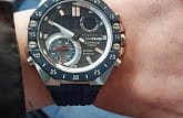 Casio Edifice ECB-10AT-1A – лимитированная модель, созданная в сотрудничестве с командой Формулы-1 Scuderia AlphaTauri. Корпус размером 48,5 мм и толщиной 12,5 мм выполнен из нержавеющей стали с IP-покрытиемIP-покрытиеМетод ионного напыления. Демонстрирует повышенную устойчивость к истиранию, окислению и химическим веществам. Под воздействием высокого давления и температуры около 1500°C молекулы металла надёжно соединяются с частицами корпуса часов. чёрного цвета, обеспечивающим прочность и устойчивость к коррозии. Циферблат выполнен из 6K карбона, что придаёт ему уникальный и технологичный вид, а его поверхность защищена сапфировым стекломСапфировое стеклоПрочный и надёжный материал из кристалла сапфира синтетического происхождения, характеризующийся особой твёрдостью и устойчивостью к царапинам и повреждениям. с антибликовым покрытиемАнтибликовое покрытиеСлой оксида металла в 0,13-0,3 микрон, благодаря которому стекло часов не бликует и не отражает свет. Антибликовое покрытие уменьшает отражение света в 10 раз, обеспечивая отличную читаемость показателей циферблата., устойчивым к царапинам.