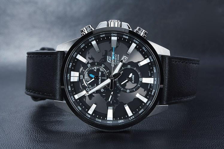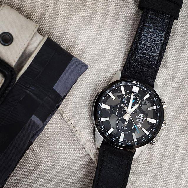 Часы CASIO EFR-303D-1A - мужские элегантные наручные часы из серии Casio Edifice. Круглый корпус, выполненный из стали, защищен минеральным стеклом, устойчивым к царапинам. Часы удерживаются на руке браслетом из высокопрочной стали с антикоррозийными свойствами. Многофункциональный кварцевый механизм, отображение второго часового пояса. Выступы на корпусе защищают переводную коронку.  Люминисцентная подсветка стрелок и часовых меток.