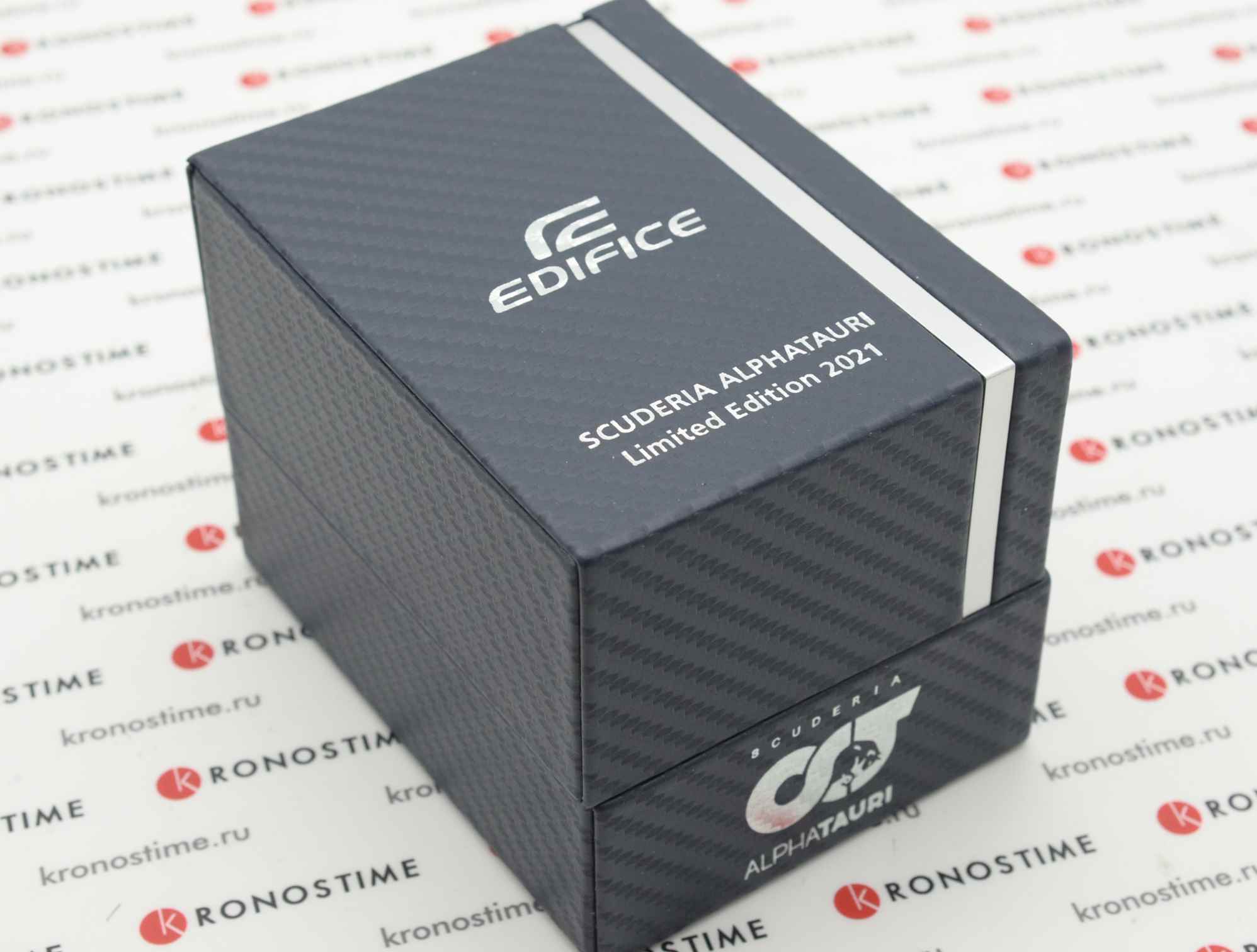 Часы Casio Edifice EFS-S580AT-1AER из лимитированной серии, созданной в коллаборации с итальянской гоночной командой Формулы-1 Scuderia AlphaTauri. Внутренний корпус часов изготовлен из того же углеродного волокна 6K, что используется в аэродинамических крыльях гоночной машины Scuderia AlphaTauri. Элементы циферблата и секундная стрелка окрашены в флуоресцентный желтый цвет, который используется на трассах Формулы-1 для безопасности.