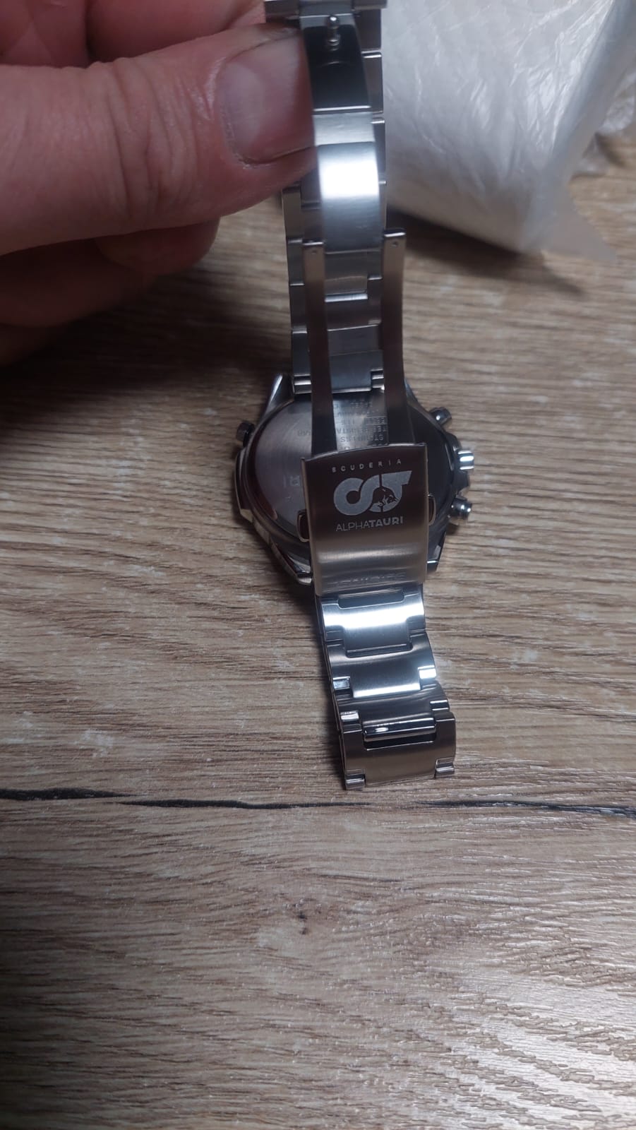 Коллаборация Edifice и итальянской гоночной команды Формулы-1 Scuderia AlphaTauri из серии EFS-S590 в стальном корпусе на стальном браслете. Лимитированная серия. Casio Edifice EFS-S590AT-1A из коллекции Edifice раскрывают автомобильную тематику.