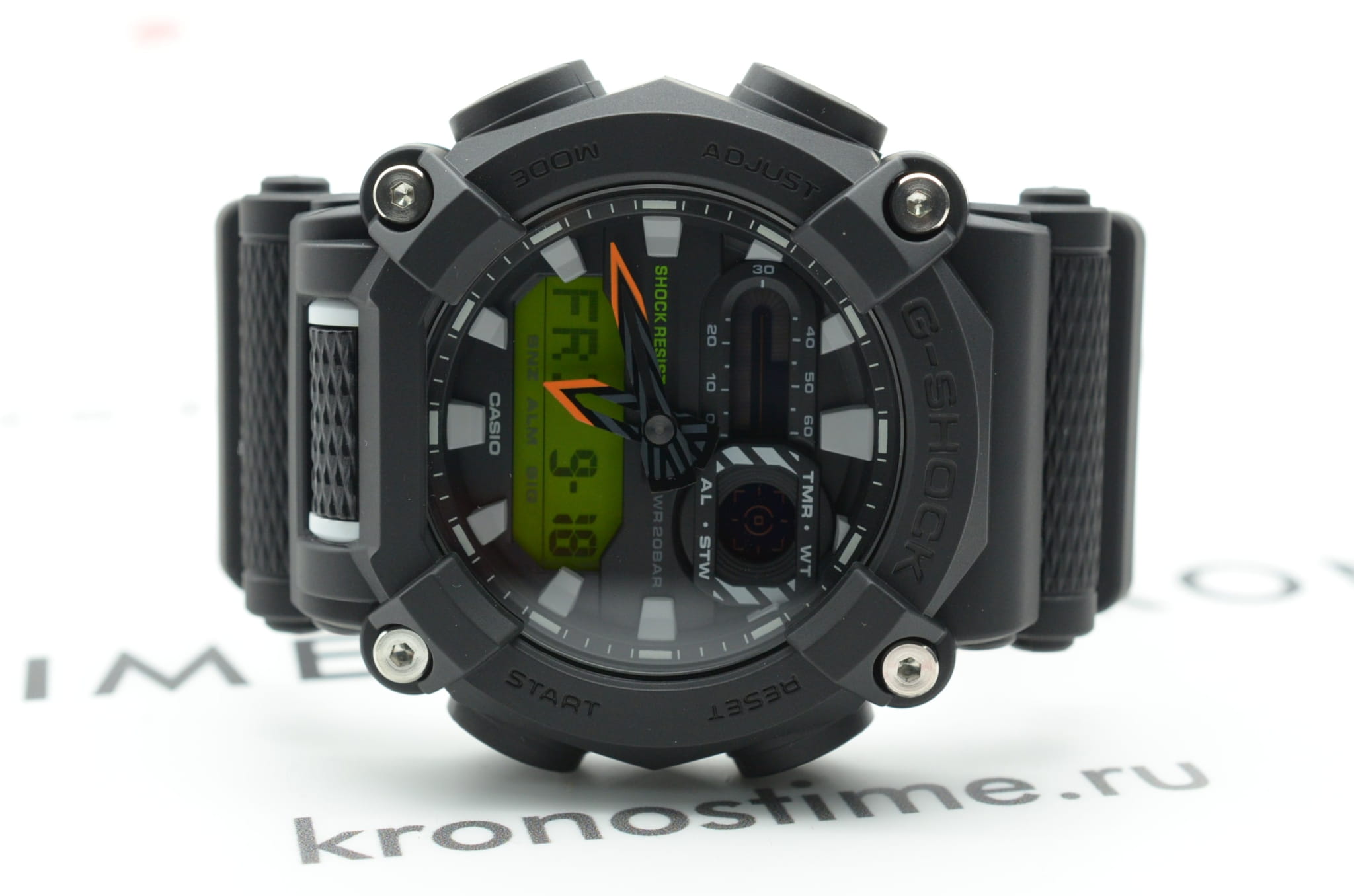 Аксессуар стал отражением уличной моды, стильный безельБезельВнешний ободок, закрепляющий стекло. В спортивных часах так называется поворотное кольцо с делениями на циферблате, выполняет роль таймера – замеряет отрезки времени на шкале. Неподвижный безель – элемент декора. Однонаправленно вращающийся безель на дайверских часах позволяет фиксировать моменты погружения и выныривания на поверхность. выполнен в форме гайки. Противоударный корпусУдаропрочный корпусМеханизм заключён в корпус, выполненный из современных материалов, устойчивых к ударам, механическим повреждениям и падению с высоты: инновационный пластик, карбон, нержавеющая сталь, титан. из пластика защищает японский кварцевый механизм от ударов, повреждений и вибрации. Полимерный ремешок имеет усиленное комбинированное крепление. Герметичность конструкции сохраняется при давлении до 20 бар. Функции: будильник, светодиоднаяСветодиодная подсветкаСветодиодная или LED-подсветка обеспечивает появление яркого холодного свечения за счёт LED-элементов - маленьких лампочек. Они потребляют минимальное количество энергии, чаще всего можно встретить 1 светодиод, в нижней части циферблата. и люминесцентная подсветкаЛюминесцентное покрытиеПозволяет считывать показания времени в темноте. Производители наносят на стрелки, часовые индексы, безель или поверхность циферблата светонакопительный состав, дающий холодное свечение., календарь, мировое времяМировое время Полезное часовое усложнение, отображающее время в основных городах и известных областях по всему миру, оно связано с часовыми поясами, удобно для путешественников и бизнесменов. , хронографХронографФункция позволяет измерять отрезки времени с особой точностью: часы, минуты, секунды. Верным признаком хронографа является наличие на циферблате 3 дополнительных окошек-счётчиков..